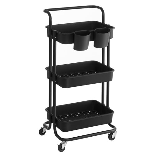 SONGMICS Gurulós tároló kocsi, 3 szintes, acél váz, műanyag kosarak, fekete