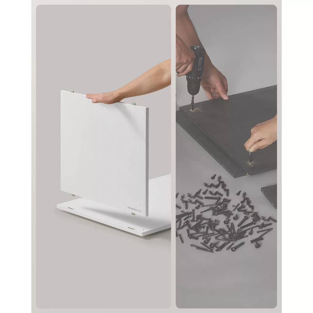 Szupergyors, szerszám nélküli összeszerelés: Állítsd össze ezt a bútort körülbelül 10 perc alatt – szerszámok nélkül. A beépített, egymásba illeszkedő csatlakozóknak köszönhetően a panelek egyszerűen összepattinthatók. Mondj búcsút a hosszadalmas, fárasztó összeszerelésnek és a sok apró alkatrésszel való bajlódásnak!