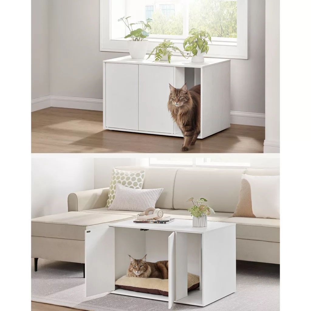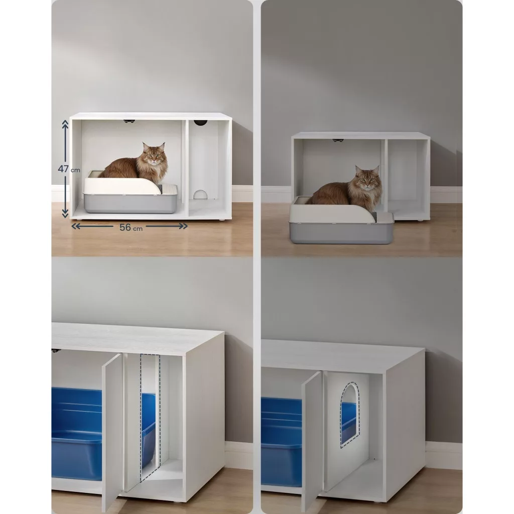 Több privát szféra, rendezettebb otthon: Ez a bútor privát teret kínál macskádnak, ahol biztonságban érezheti magát, miközben elvégzi a dolgát. Emellett elrejti a szagokat és csökkenti az alom széthordását – igazi win-win megoldás!