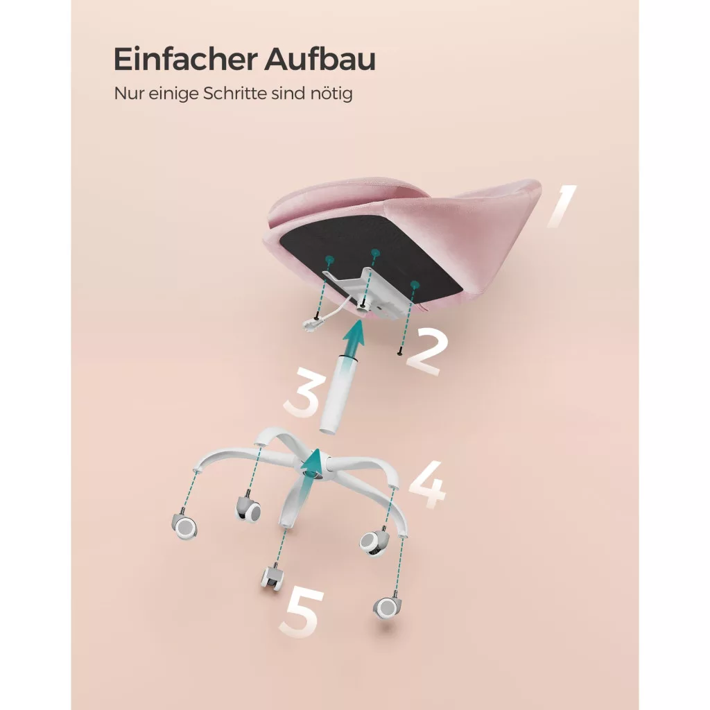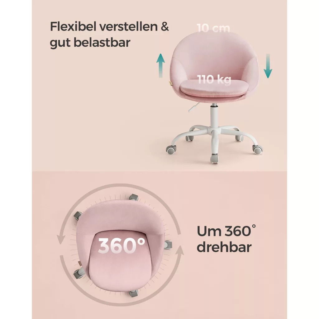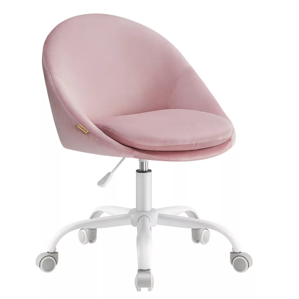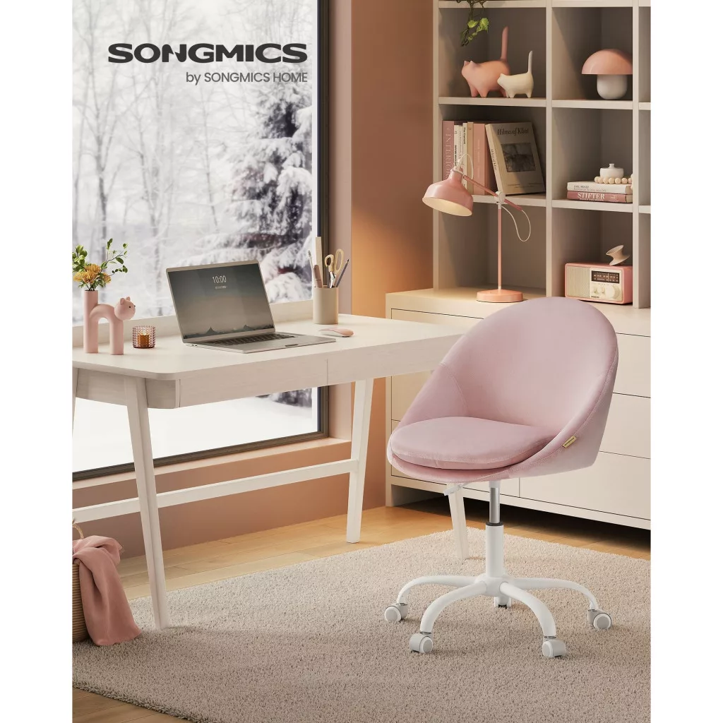 SONGMICS Irodai forgószék, párnázott, gurulós, pasztell rózsaszín