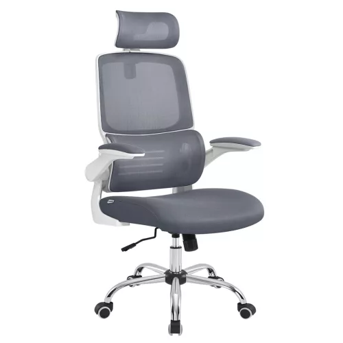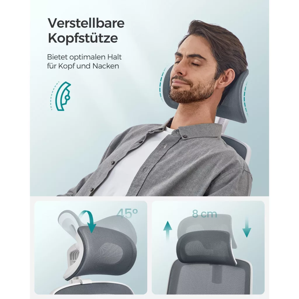 SONGMICS Irodai forgószék szövet huzattal hálós támlával, fejtámasszal, galambszürke