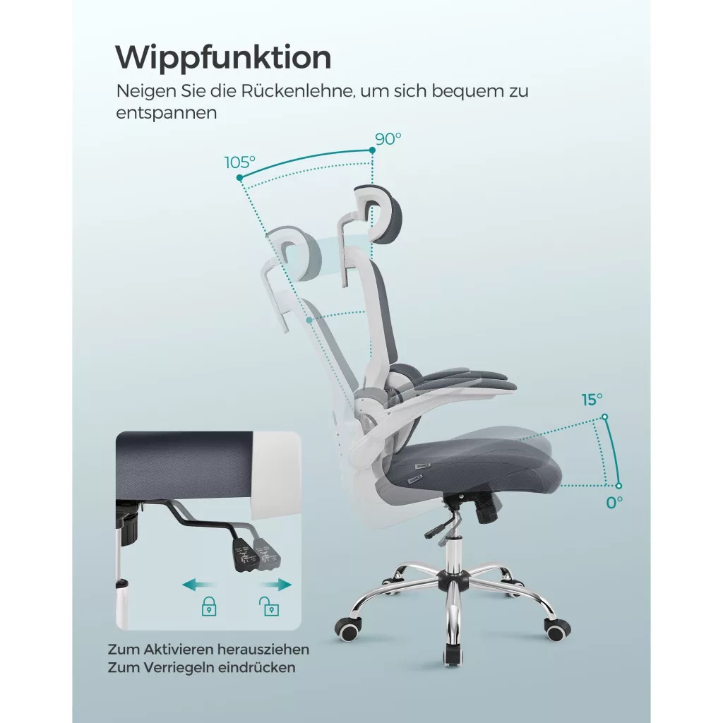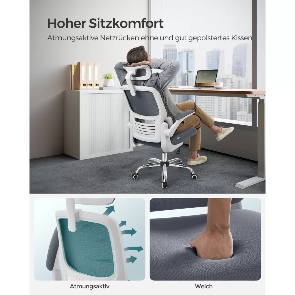 SONGMICS Irodai Szék, Íróasztali Szék, Ergonomikus, Összecsukható Karfák, Magas