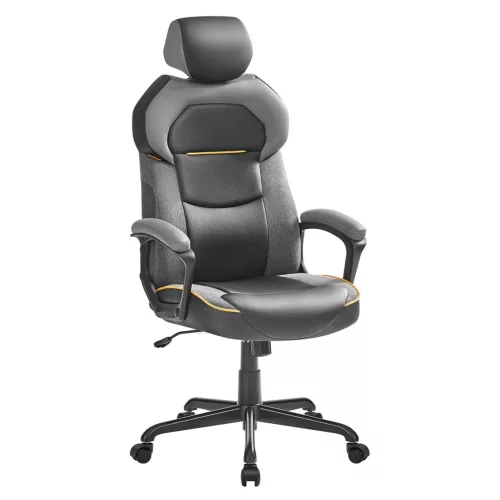 SONGMICS Irodai szék műbőr, állítható, fejtámla, párnázott karfák, fekete