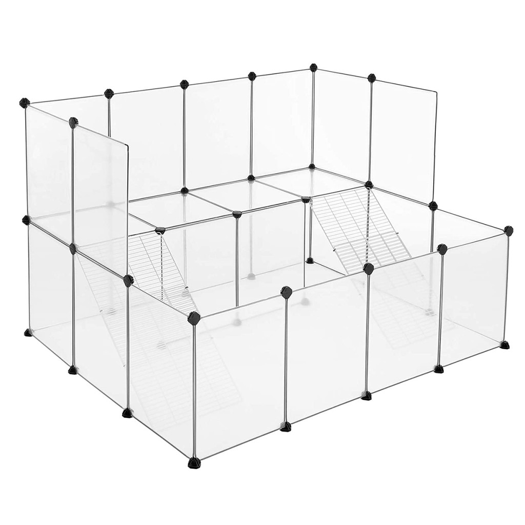 Fussatok, cukik! Ez a moduláris ketrec erkéllyel, lépcsőkkel és terasszal biztosan az új játszóparadicsom lesz kis szőrös labdád számára. Itt a bolyhos barátod kedvére rohangálhat, anélkül, hogy aggódnod kellene, hogy elszökik vagy megsérül.