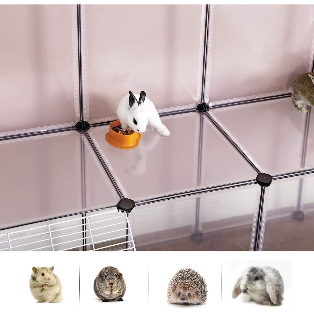 Egy DIY-Ház Kisállatoknak: Egyszerűen illeszd be a PP paneleket a többirányú csatlakozókba, hogy egy stabil kisállat ketrecet hozz létre, amely tökéletesen illeszkedik otthonodba. Ezután finoman ütögesd meg a csatlakozásokat a mellékelt kalapáccsal, hogy eltüntesd a kis hézagokat.