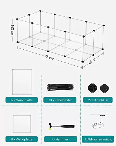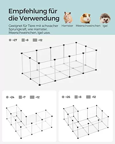 Összeszerelés Gyerekjáték: Egyszerűen csatlakoztassa a műanyag paneleket a több szögben állítható csatlakozókkal a mellékelt gumikalapács segítségével, és gyorsan felállíthatja ezt a kisállat játszóteret; a moduláris, könnyű szerkezet megkönnyíti a szétszerelést vagy az áthelyezést is