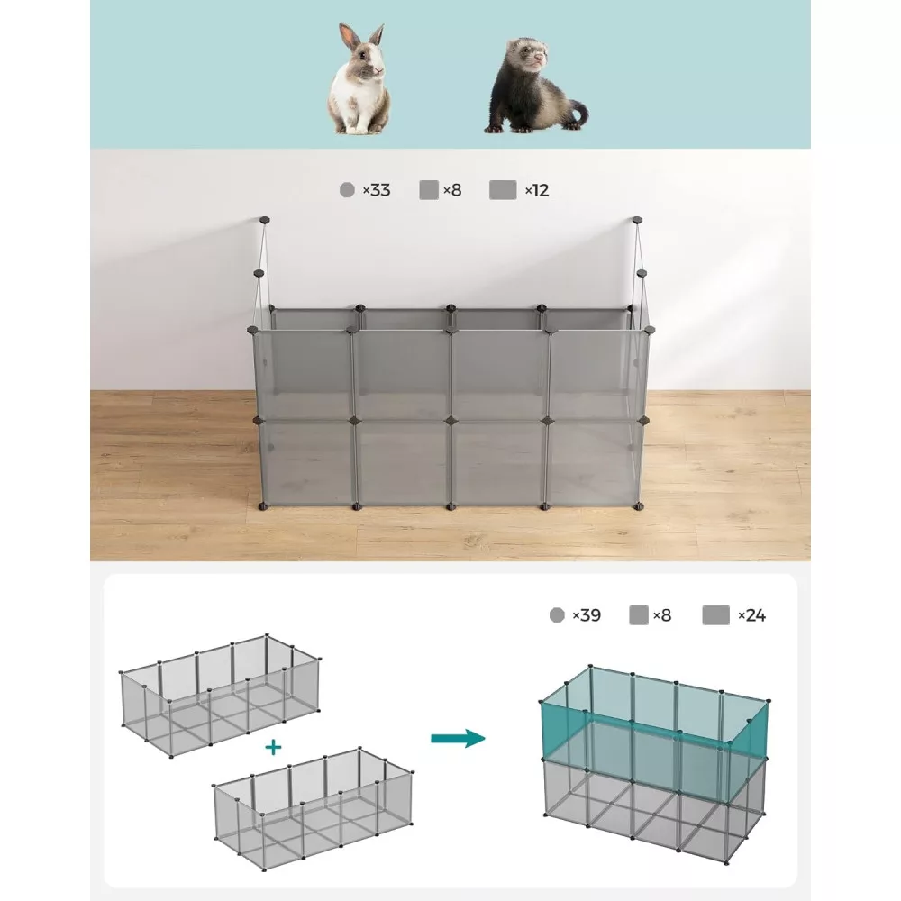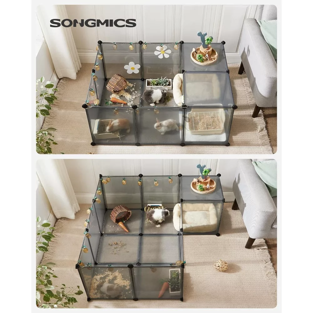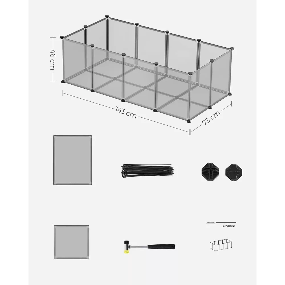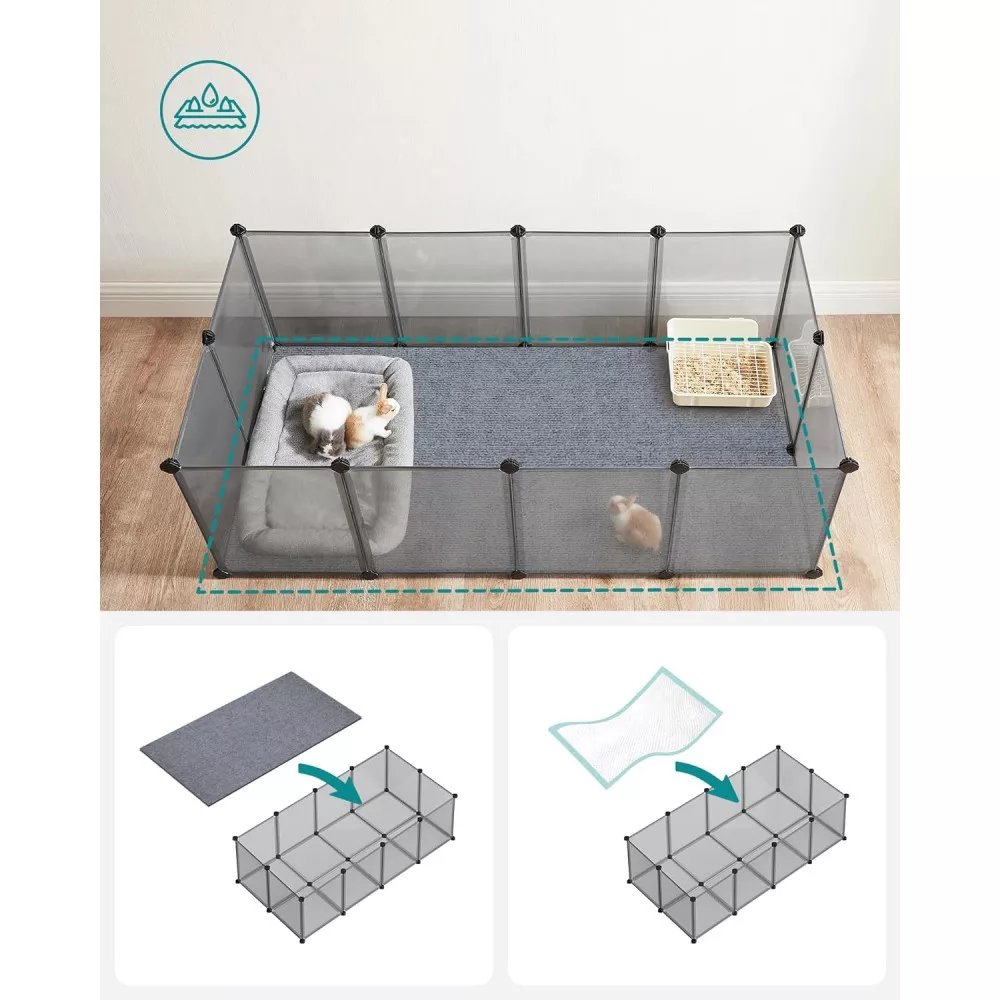 Összeszerelés Gyerekjáték: Egyszerűen csatlakoztassa a műanyag paneleket a több szögben állítható csatlakozókkal a mellékelt gumikalapács segítségével, és gyorsan felállíthatja ezt a kisállat játszóteret; a moduláris, könnyű szerkezet megkönnyíti a szétszerelést vagy az áthelyezést is