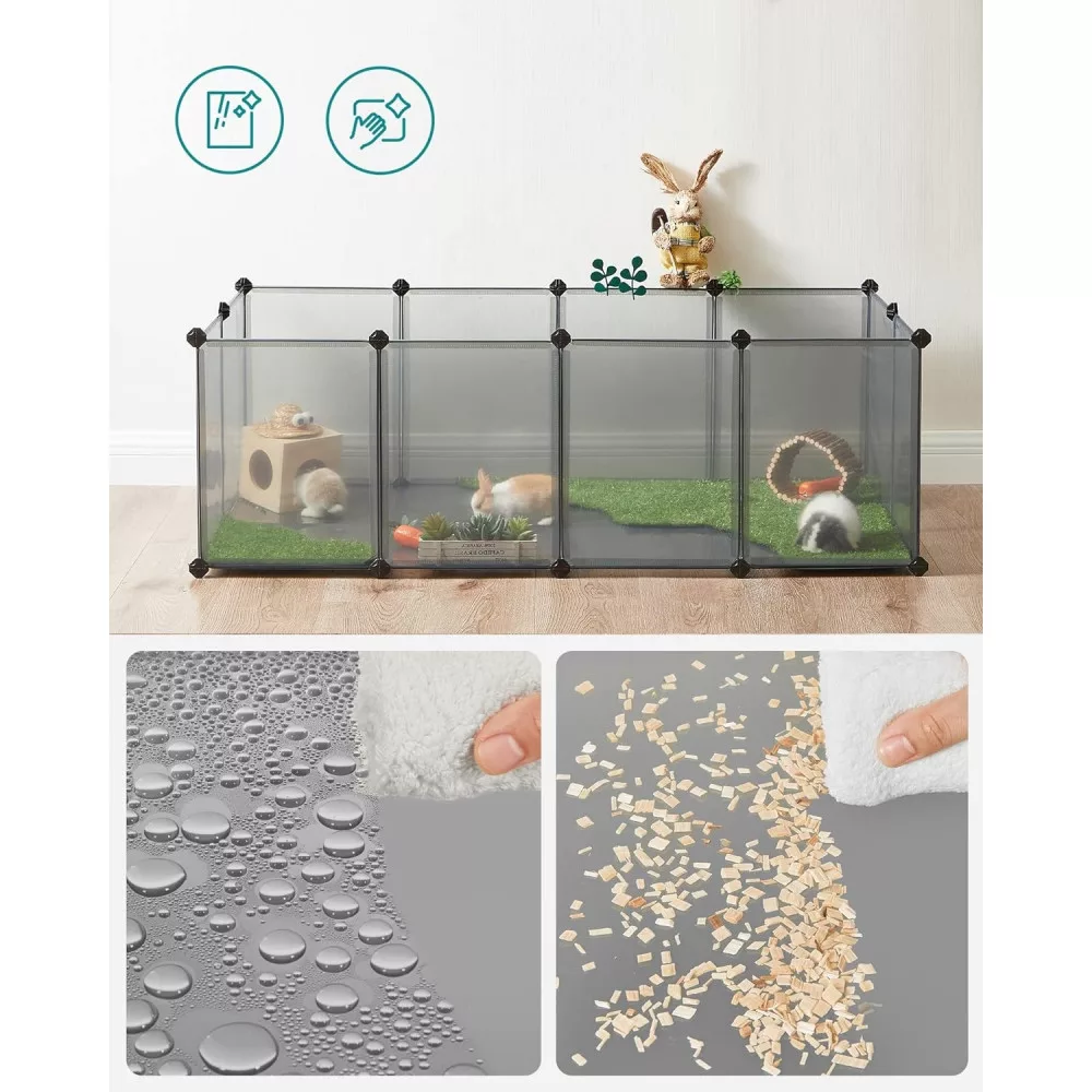 Átlátszó és Könnyen Tisztítható: Az átlátszó műanyag panelek lehetővé teszik, hogy szemmel tartsa és kapcsolatba lépjen kis szőrös barátaival; ha a tengerimalac futtató piszkos lesz, egyszerűen törölje le egy nedves ruhával