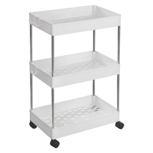 Konyhai tálaló kocsi, gurulós tároló polc, fehér 40x22x60cm