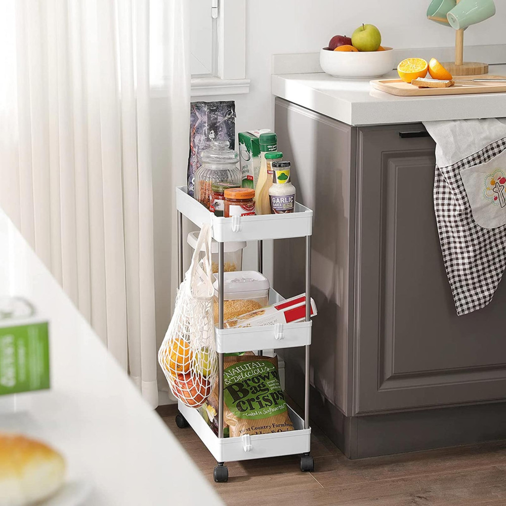 SONGMICS 3 szintes tárolókocsi, konyhai kocsi kerekeken, keskeny kocsi konyhába,