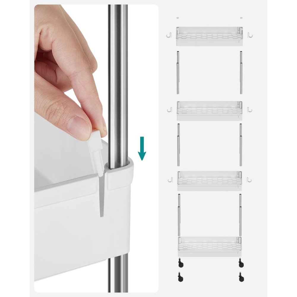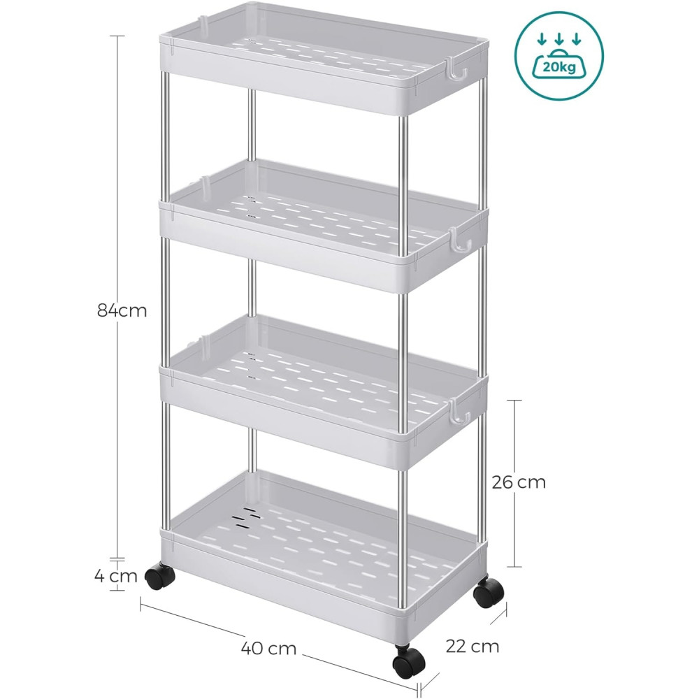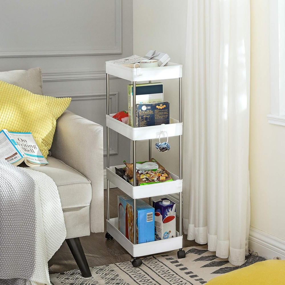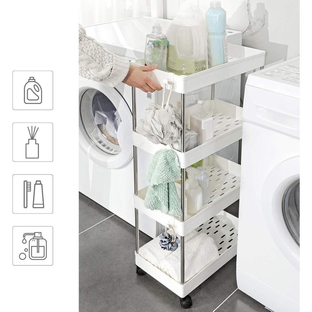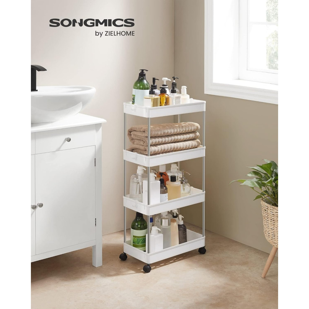 SONGMICS 4 szintes tároló kocsija, görgős szekér kerekekkel, helytakarékos konyhai