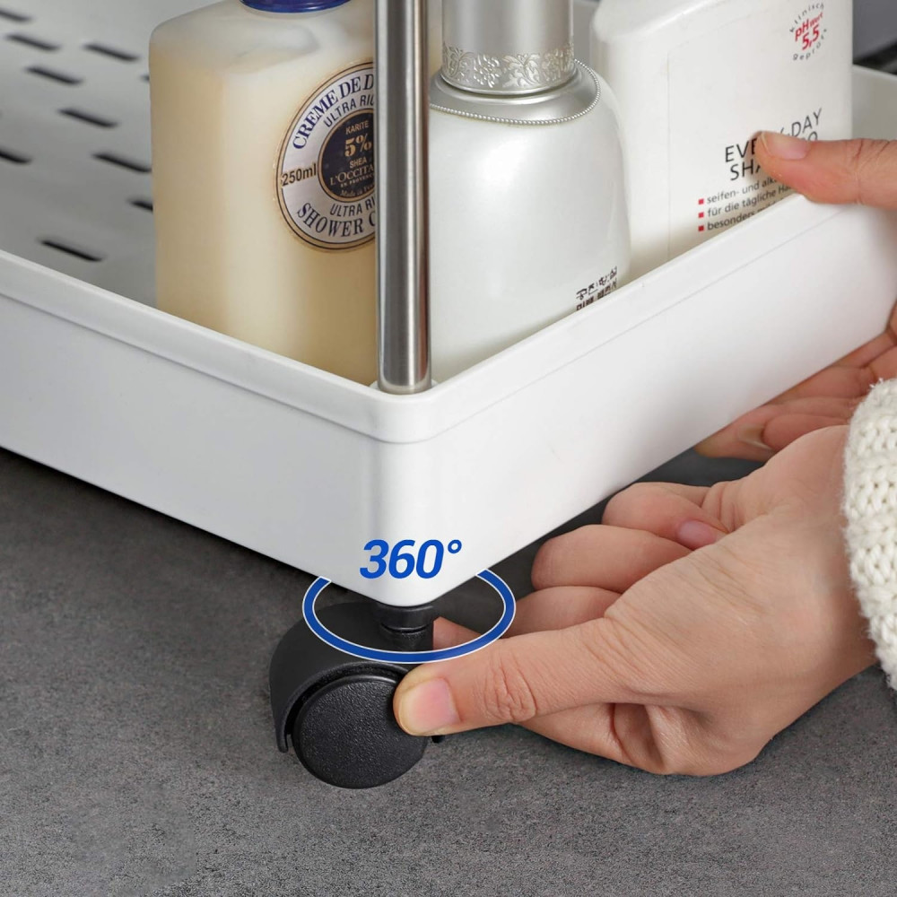 Tedd és Akaszd: Helyezd el a gyümölcsöket és zöldségeket a helytakarékos konyhai kocsin—a polcokon lévő lyukak szellősen tartják őket; a 3 további kampóra pedig edényfogókat és konyharuhákat akaszthatsz, hogy mindig könnyen elérhesd őket.