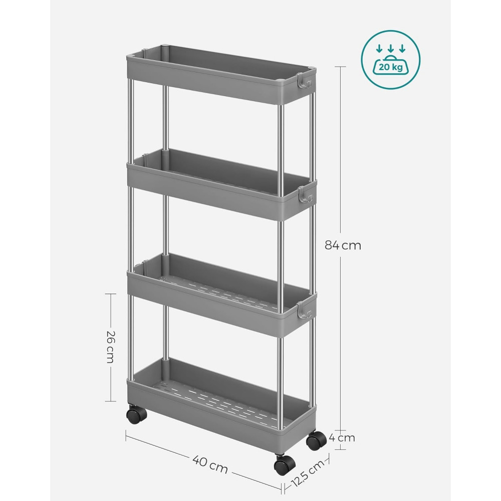 SONGMICS 4 szintes tolóasztal, görgős kocsi kerekekkel, helytakarékos keskeny konyhai