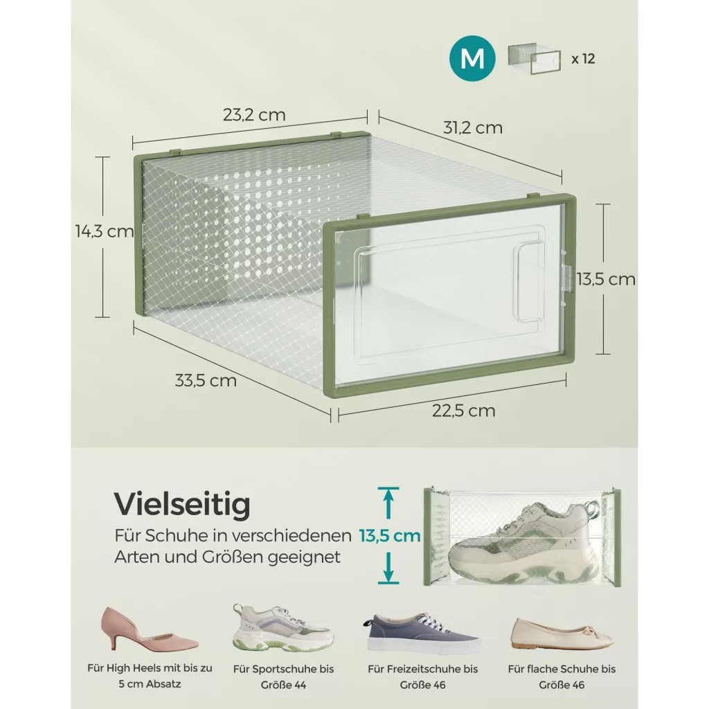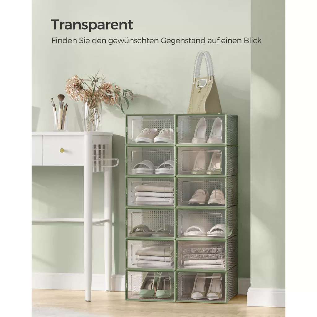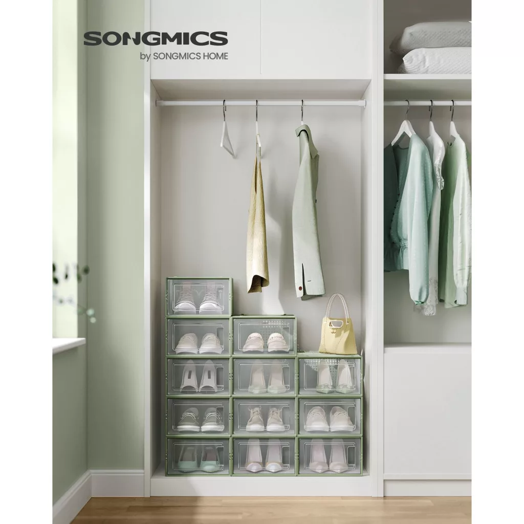 SONGMICS Nagy méretű cipőtároló doboz, műanyag tároló 12db, zölefs átlátszó 33x23x14cm