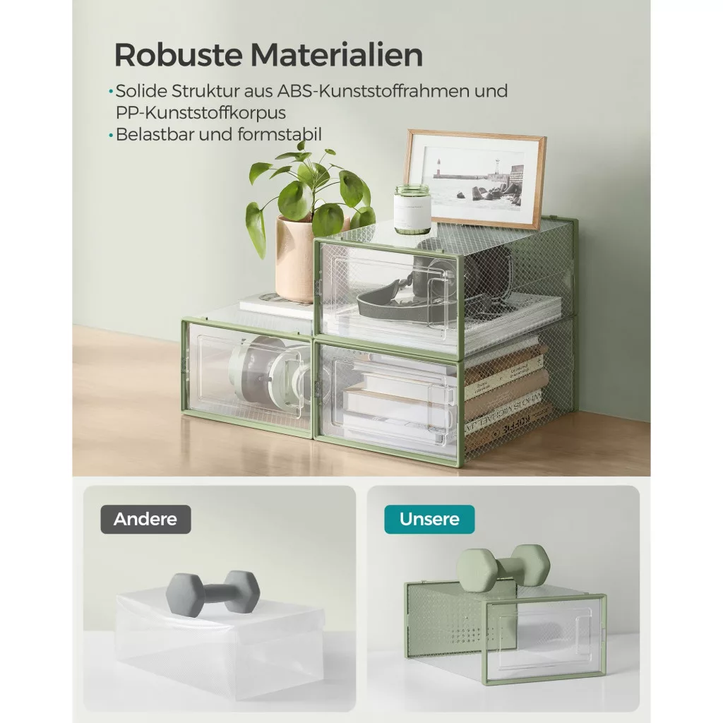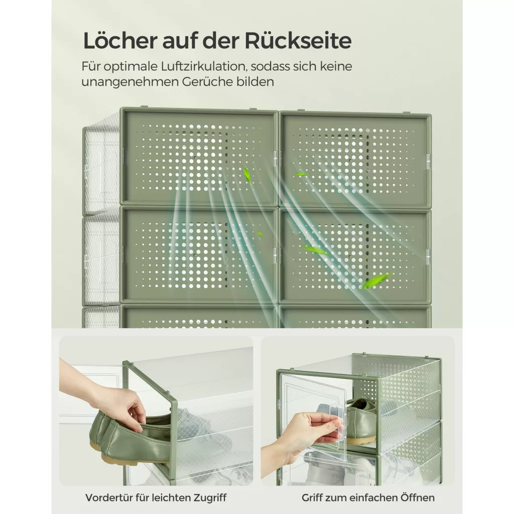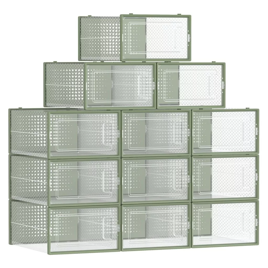 SONGMICS Nagy méretű cipőtároló doboz, műanyag tároló 12db, zölefs átlátszó 33x23x14cm