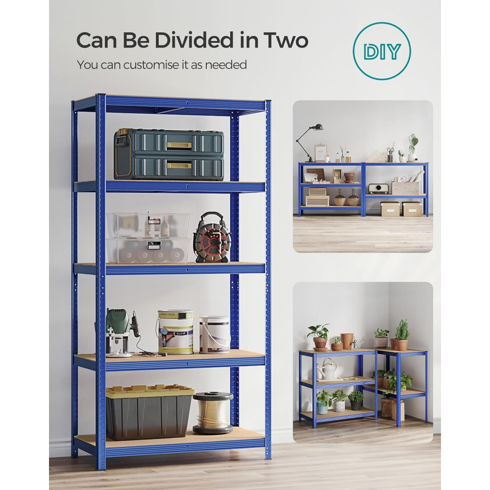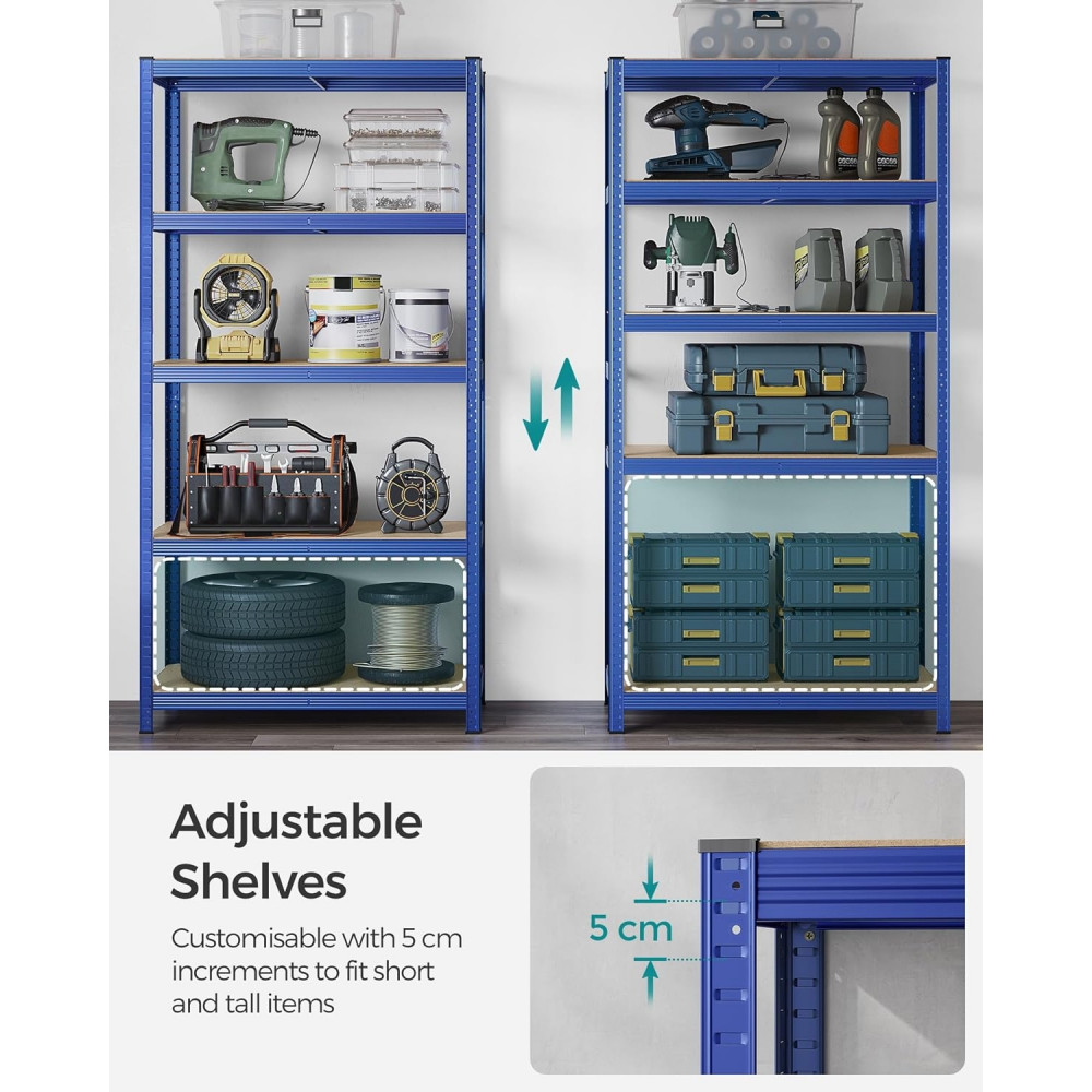 SONGMICS Polcos állvány, 120kg polconkénti teherbírással, kék 200x100x50cm