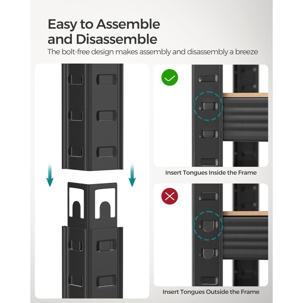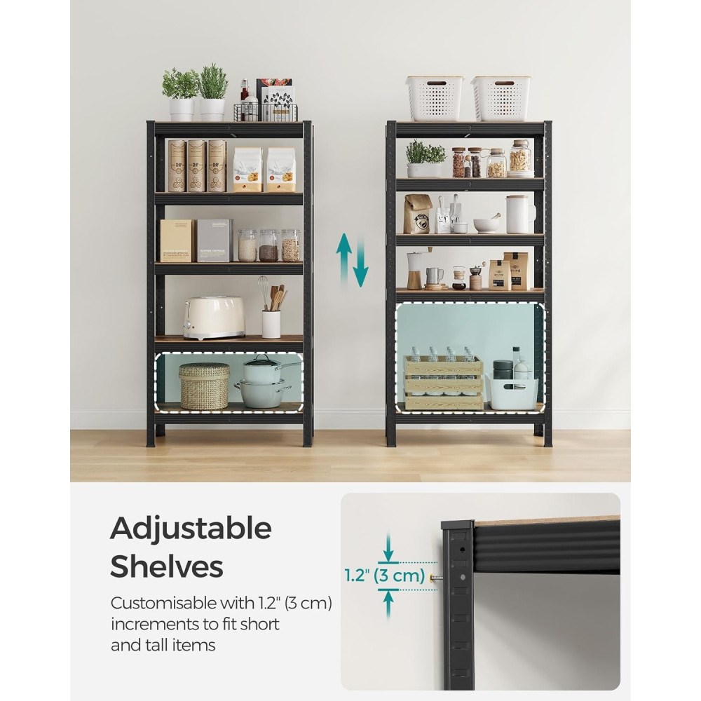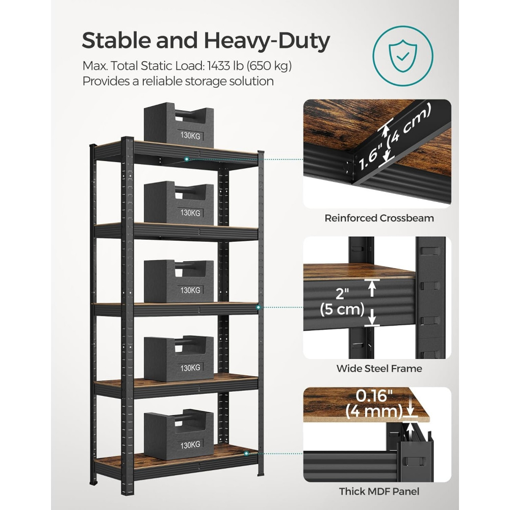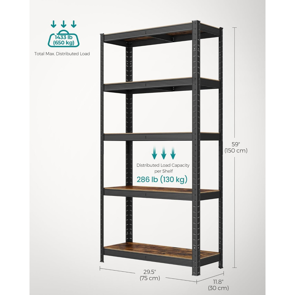 SONGMICS Polcos állvány, 30 x 75 x 150 cm, 650 kg teherbírás (130 kg polconként), ipari