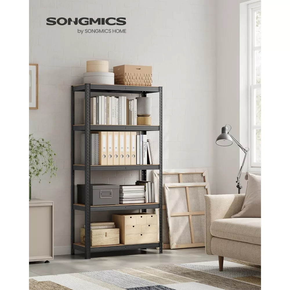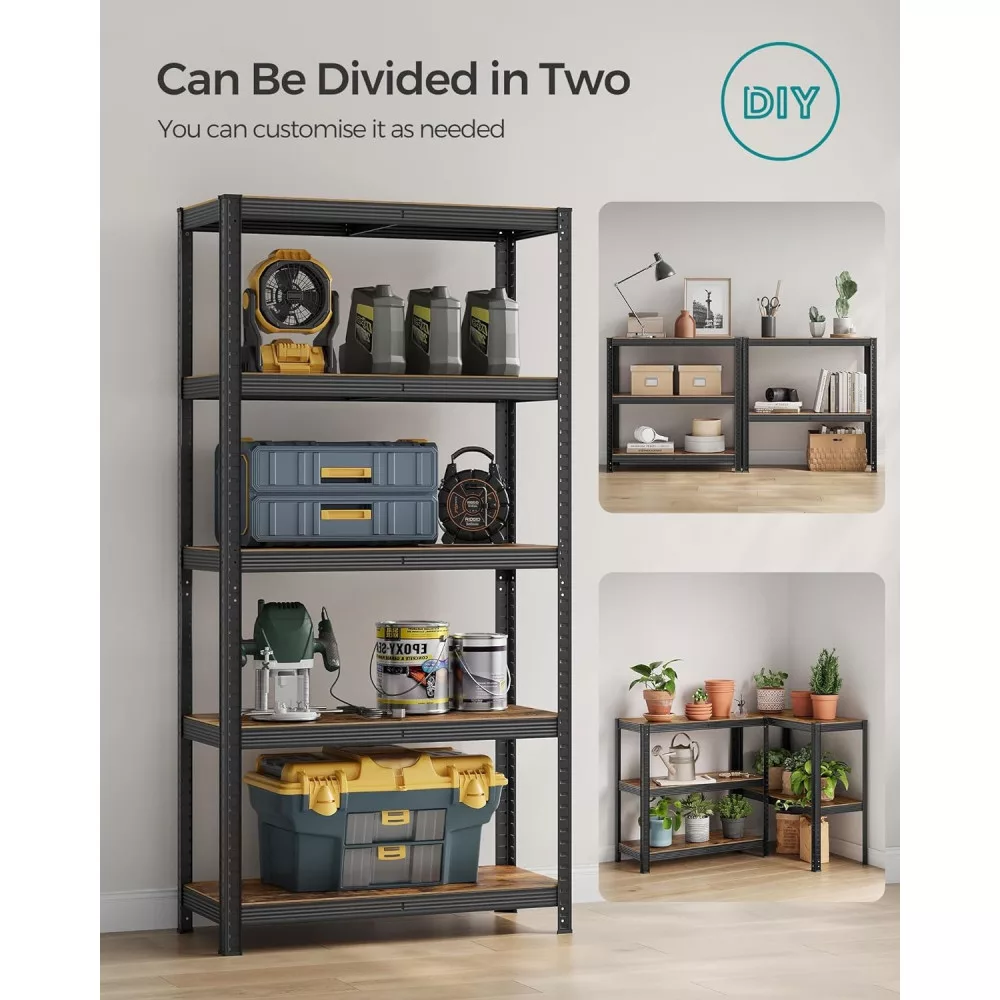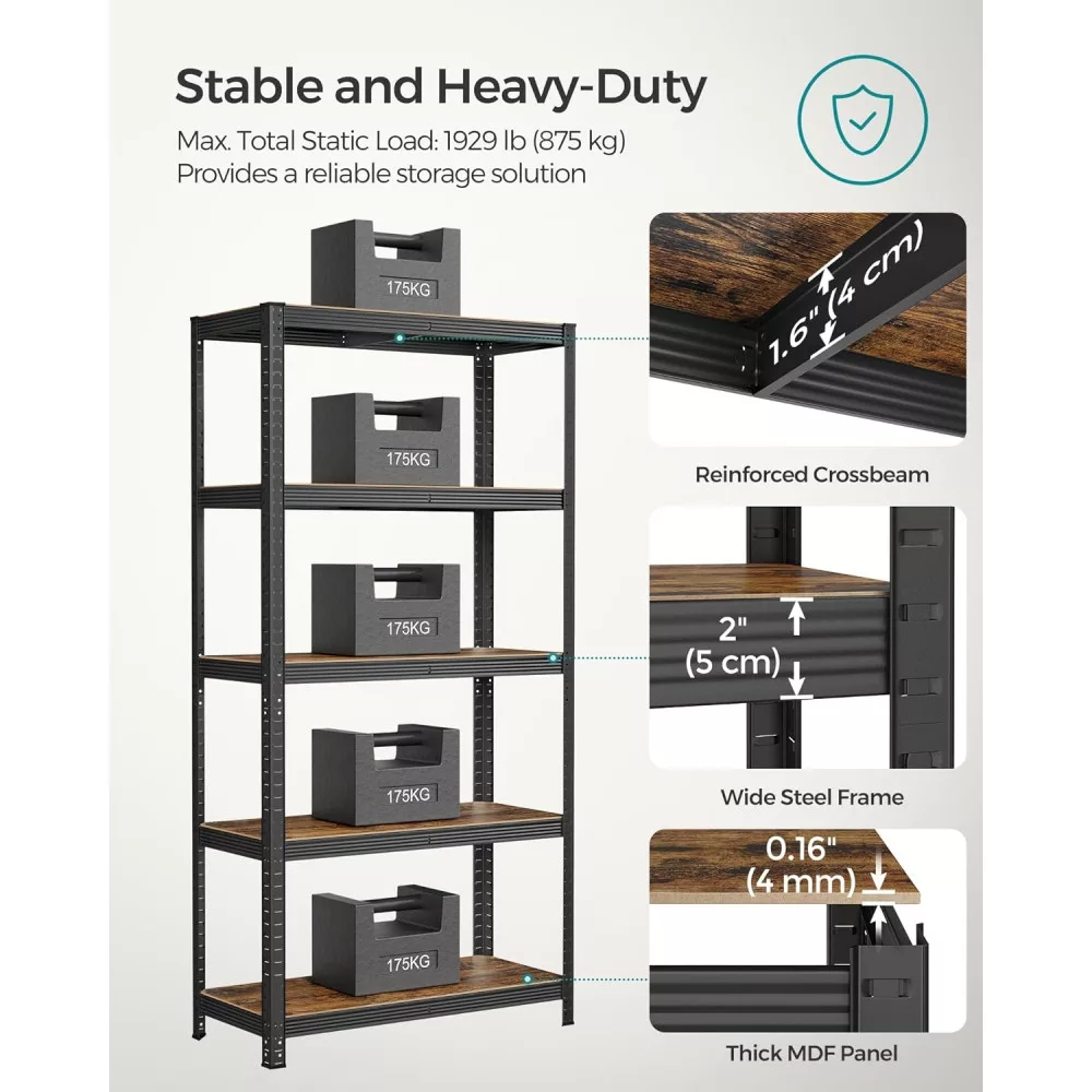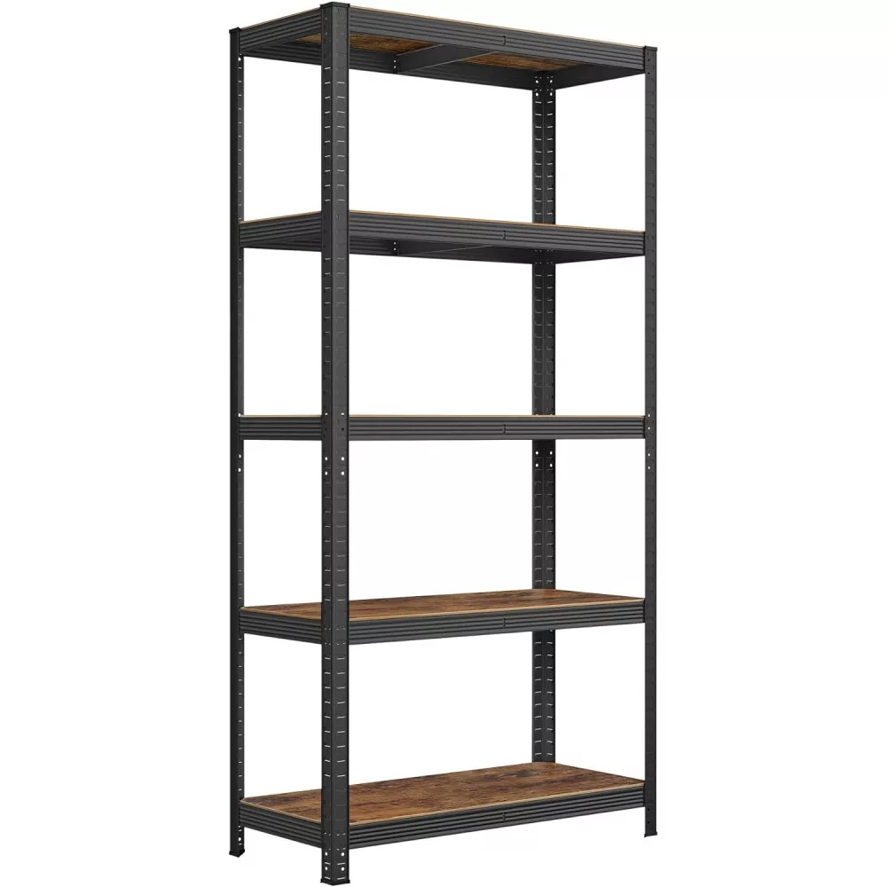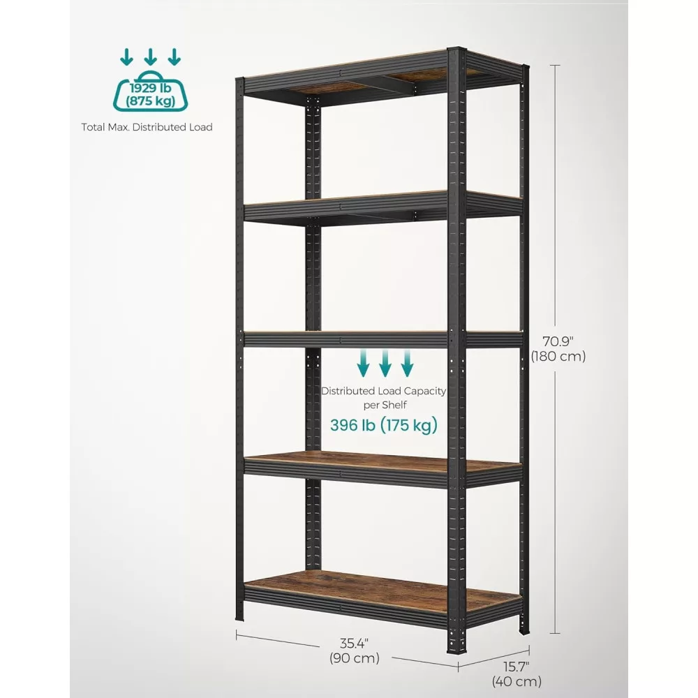 SONGMICS Polcos állvány, 175kg polconkénti teherbírással, fekete, rusztikus barna 180x90x40cm