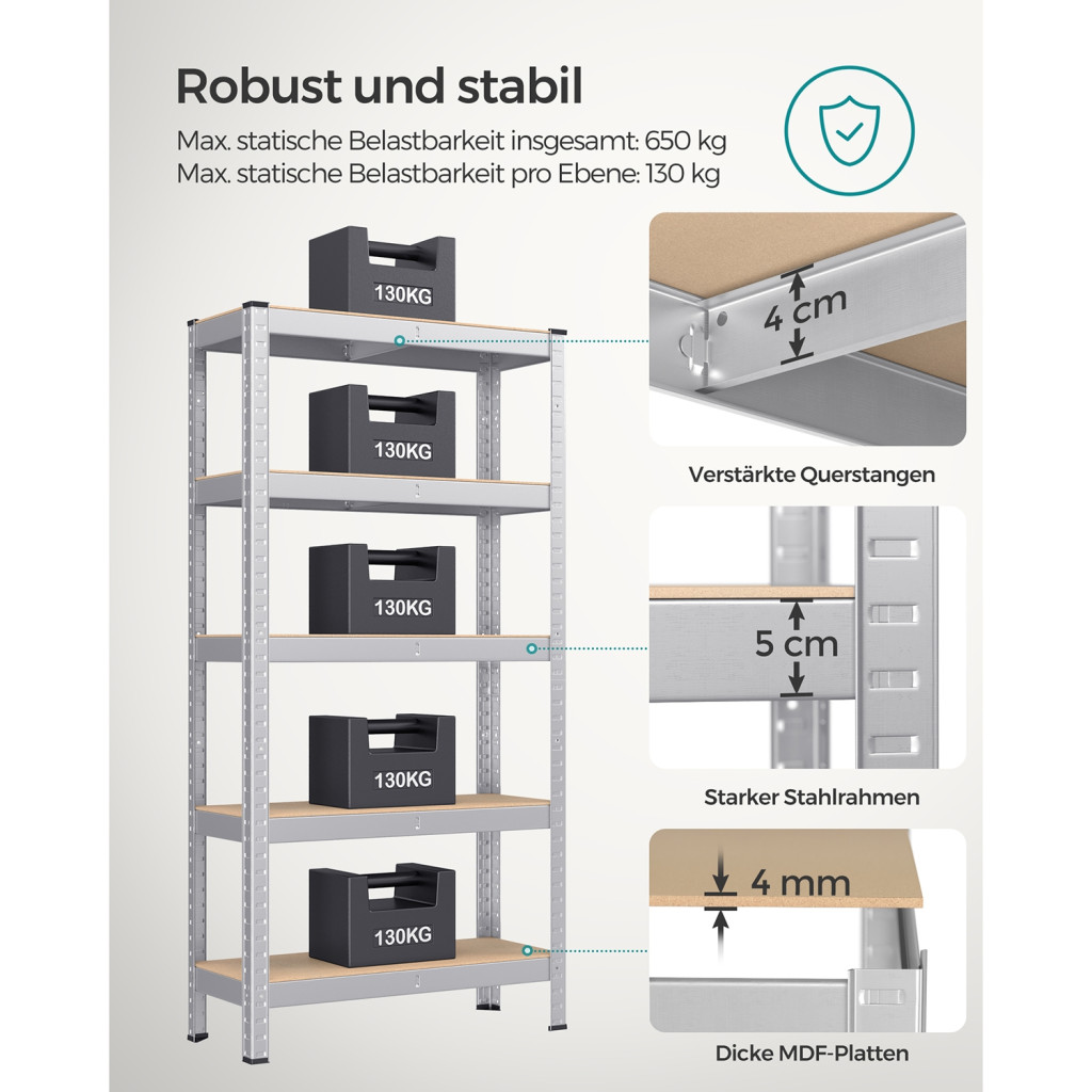 Nagy méret, nagy kapacitás: 30 x 75 x 150 cm méretű és összesen 650 kg teherbírású, ez a polc használható garázsban, raktárban, pincében vagy háztartási helyiségben, hogy rendszerezze az összes szerszámát és felszerelését