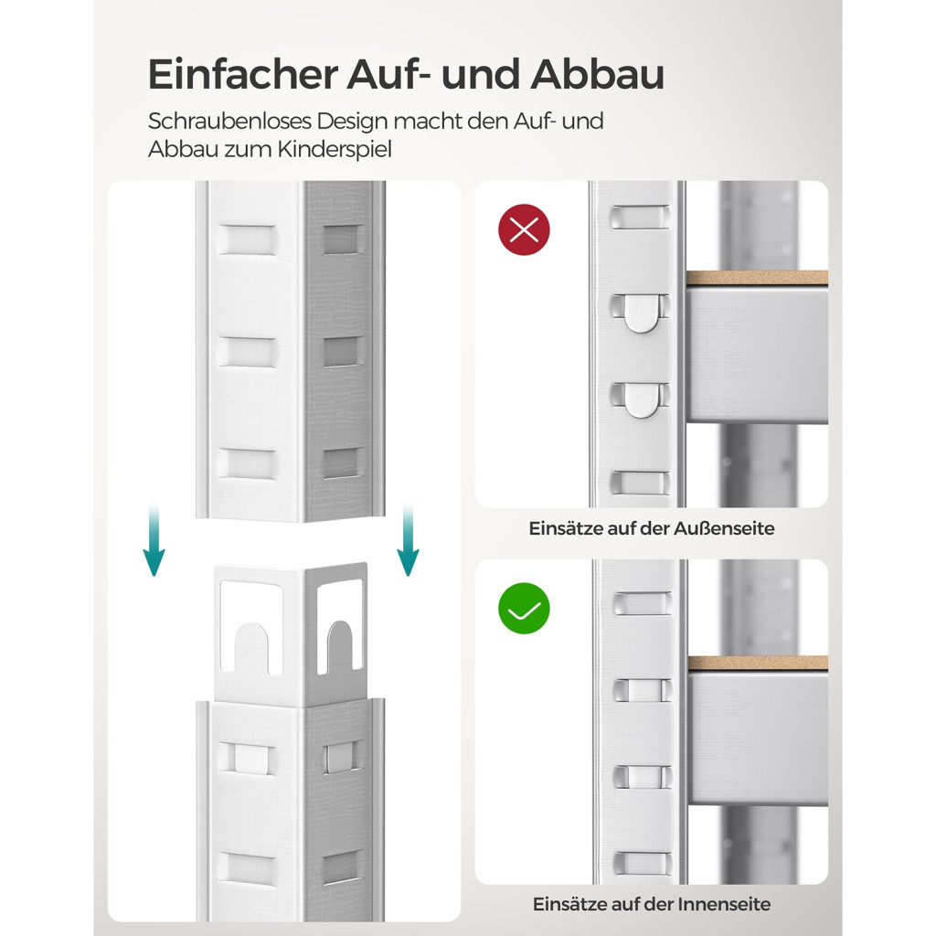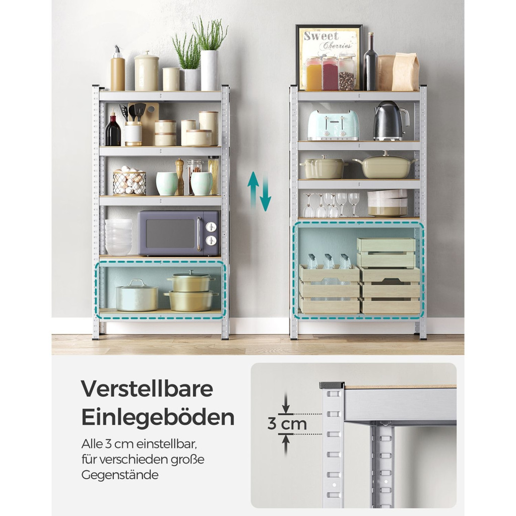 SONGMICS 5 szintes polcrendszer, acél polcrendszer tároláshoz, csavarmentes összeszerelés,