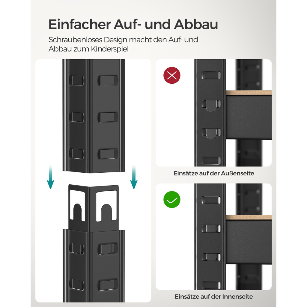 Egyszerű csavarmentes összeszerelés - Az összekapcsolható kialakításnak és az egyértelmű utasításoknak köszönhetően ez a masszív polc könnyen összeszerelhető.
