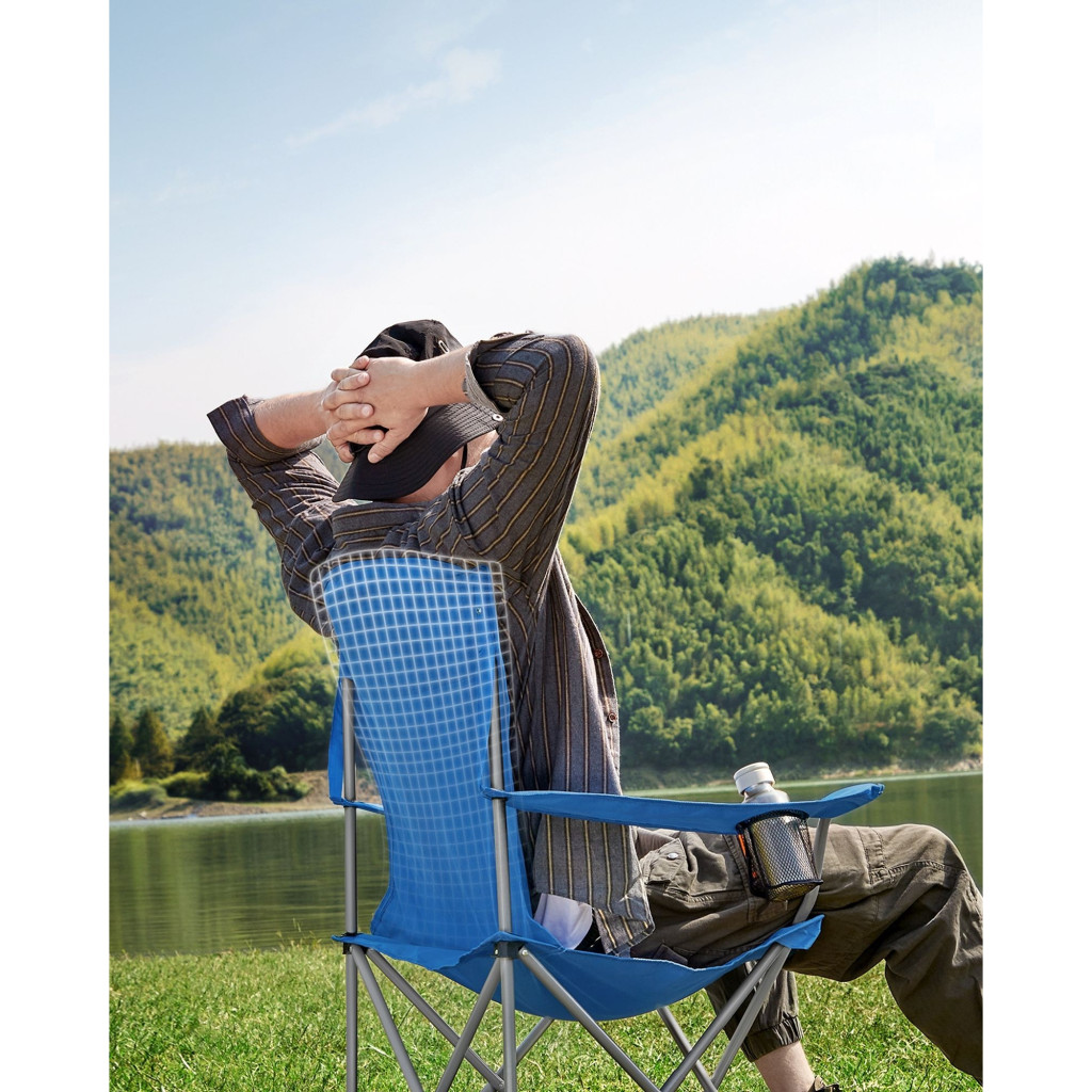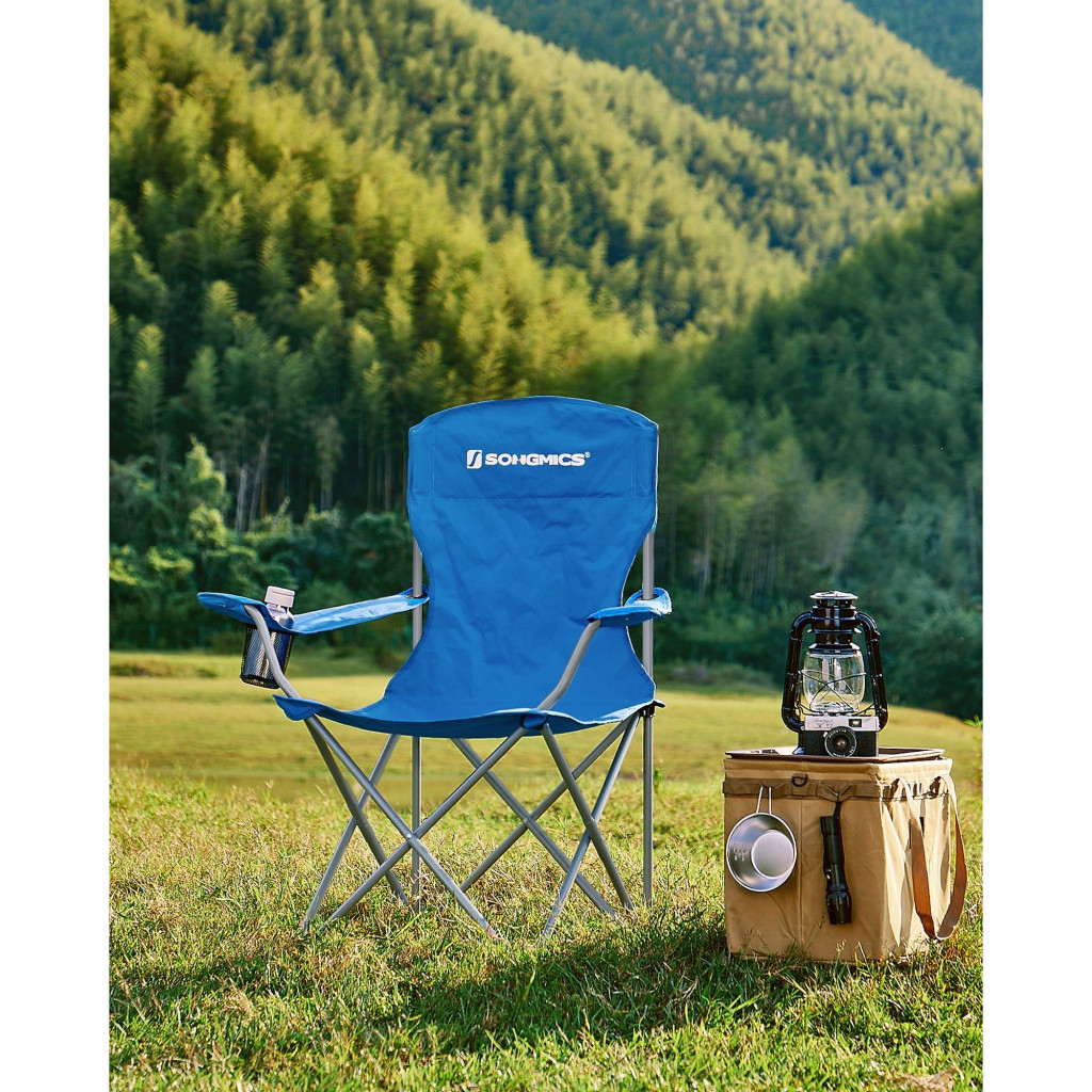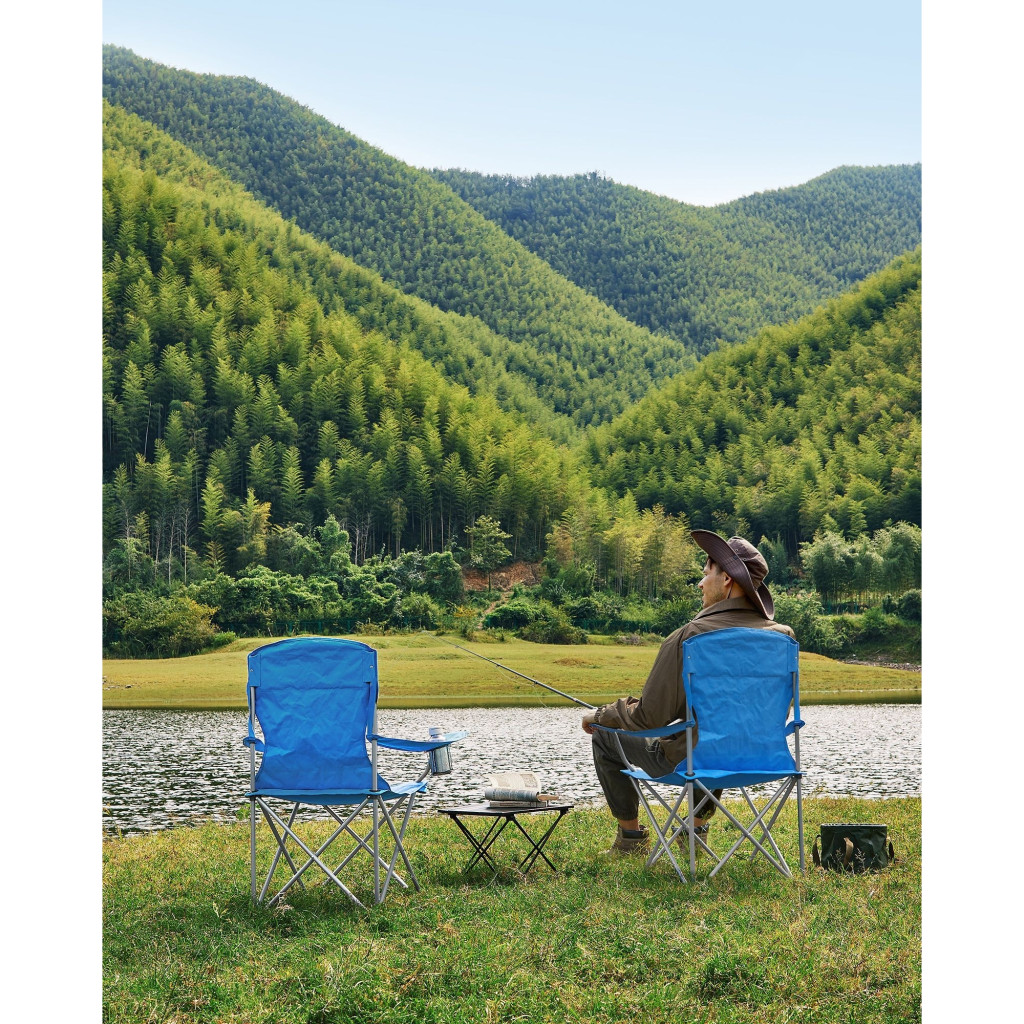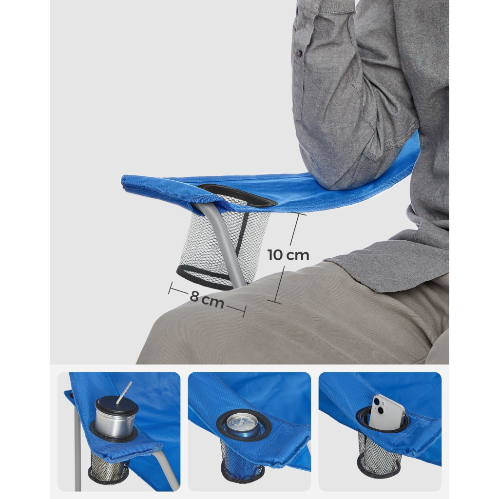 2db Kemping szék, kék, kényelmes, pohártartóval, 150 kg-ig terhelhető
