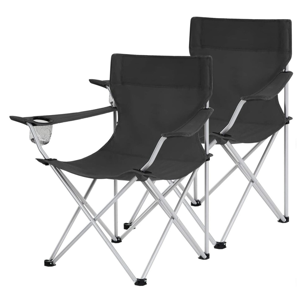 2db Kemping szék, fekete, karfás, pohártartóval, 120 kg-ig terhelhető