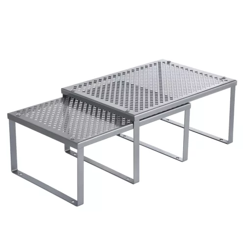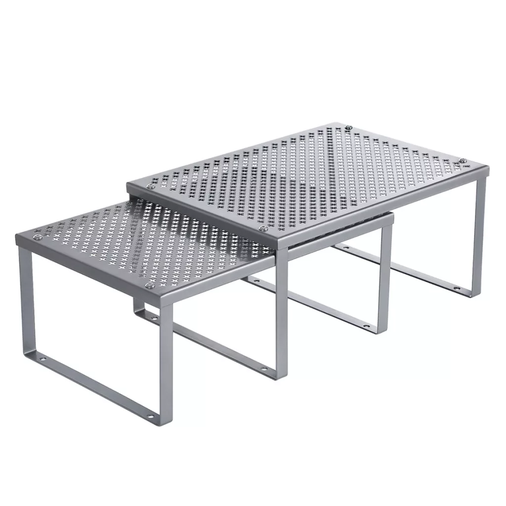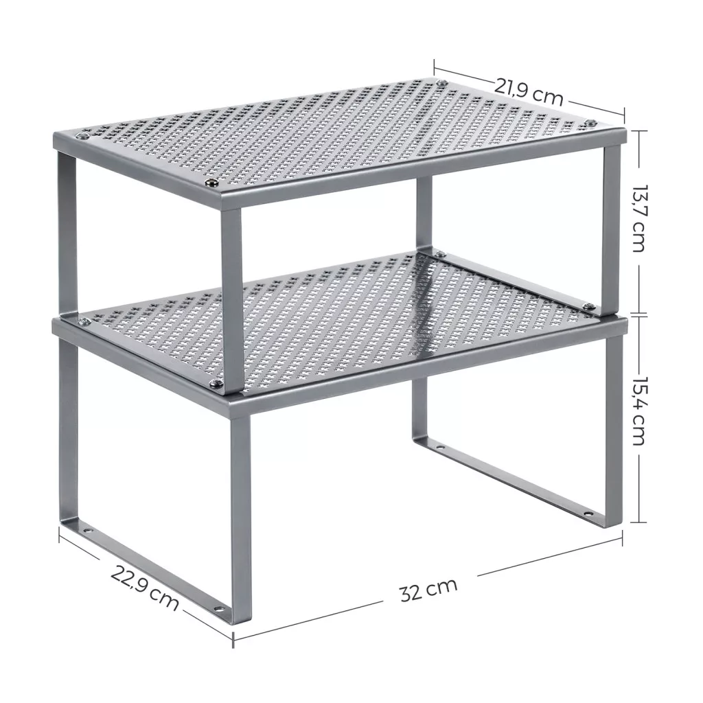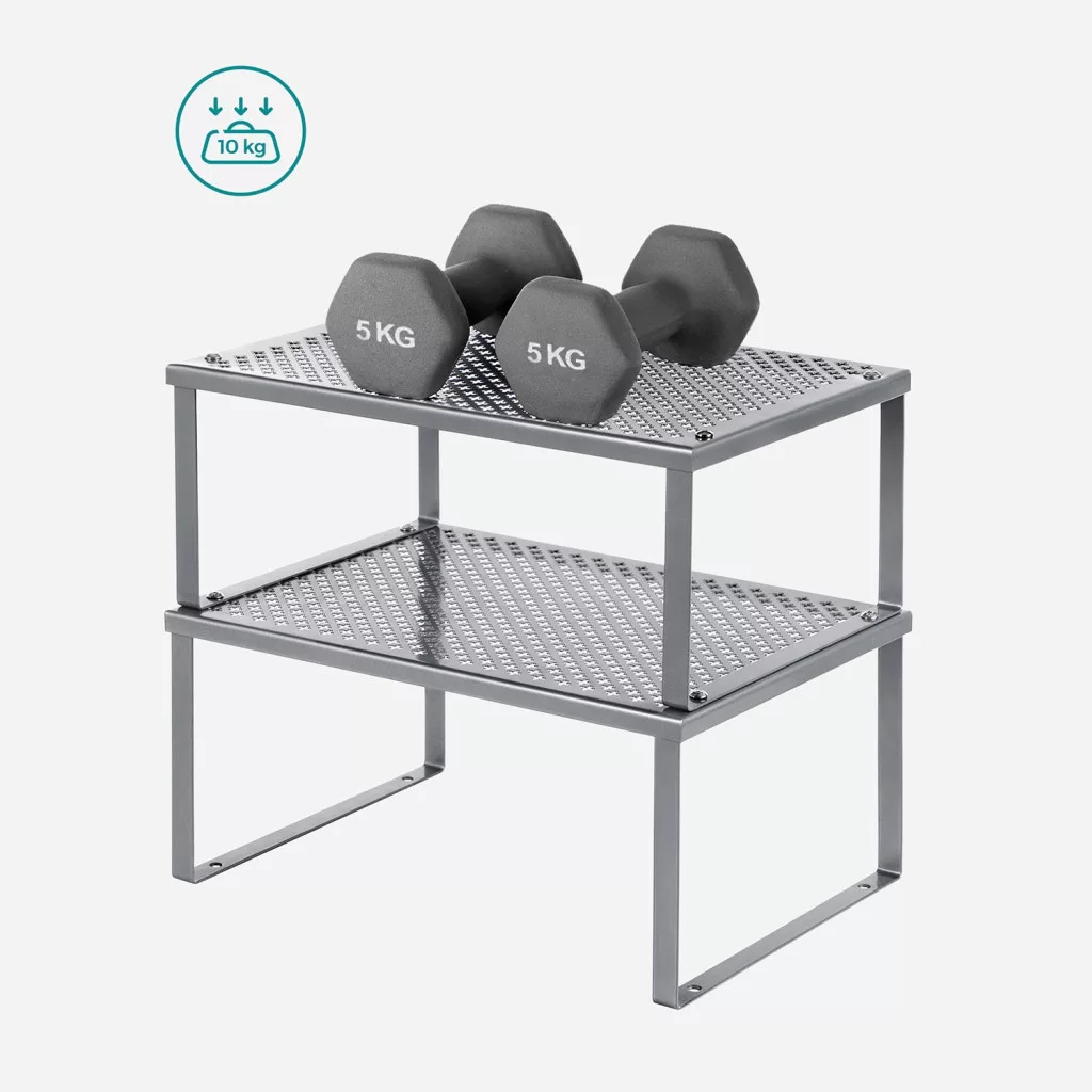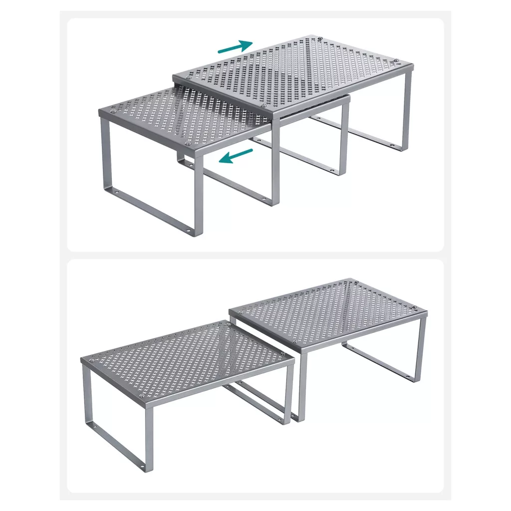 Mit kapsz: 2 elegáns fém polcot, amelyeket egymásra rakhat, kiterjeszthet vagy különböző helyekre helyezhet - nagyszerű ötlet a szekrényed vagy a pultod terének maximalizálására.