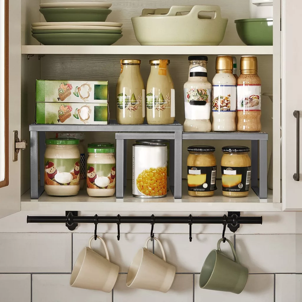 Oszd meg és uralkodj: Nagy szekrényed van, de a fűszereidnek és üvegeidnek még mindig nincs helyük? Próbáld meg elosztani a szekrényed terét ezekkel a rendezőkkel, hogy megduplázd a szervezési teredet.