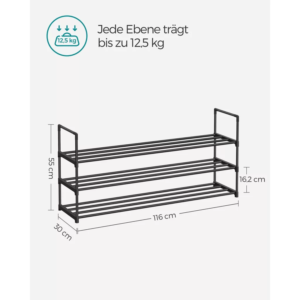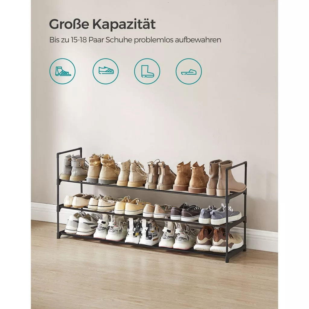 Nagy Kapacitás: A 116 x 30 x 55 cm méretű, 3 szintes cipőtartó akár 15 pár férfi vagy 18 pár női cipőt is elbír. Segít rendben tartani a cipőidet és könnyen hozzáférhetővé teszi azokat.