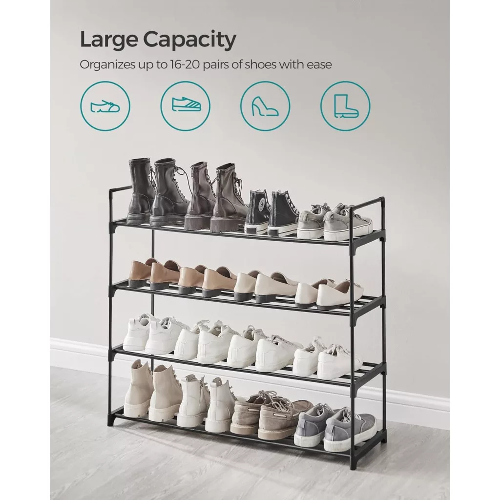 Masszív és Tartós: Minőségi műanyag csatlakozókkal összekötve, ez a vastag fémcsövekből készült cipőrendező polconként akár 10 kg-ot is elbír, megbízható otthont biztosítva lábbelijeinek.