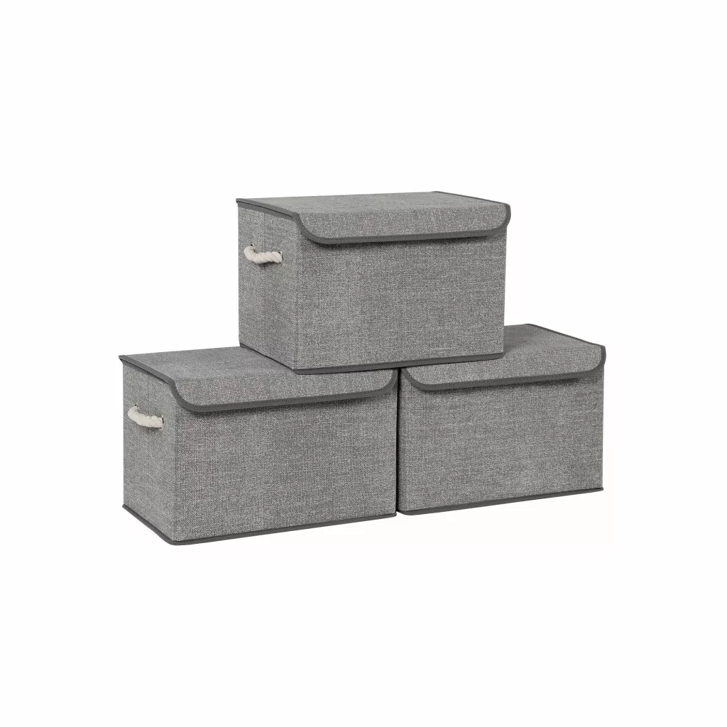 Textil tárolódobozok felnyitható tetővel 3db, szürke, lenvászon minta, 38 x 25 x 25