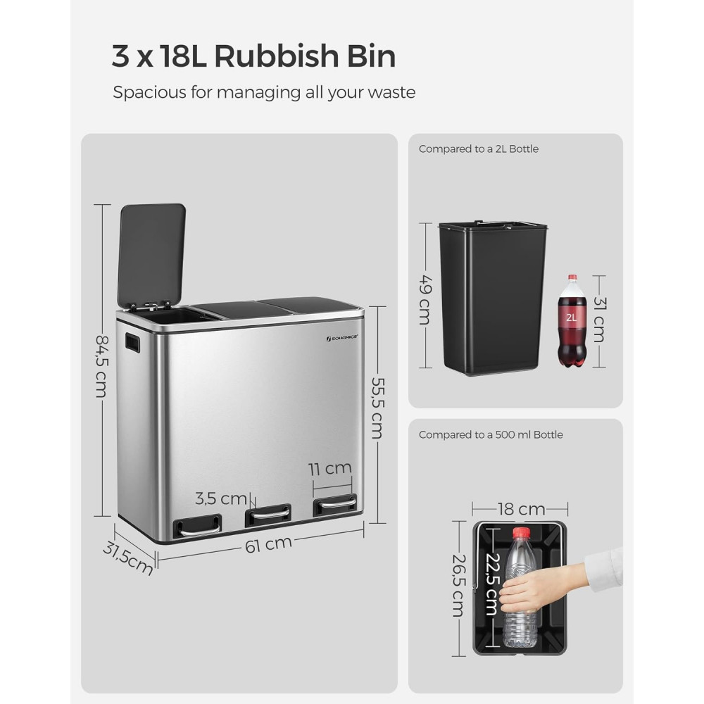 SONGMICS Szelektív szemeteskuka 3x18L, ezüst