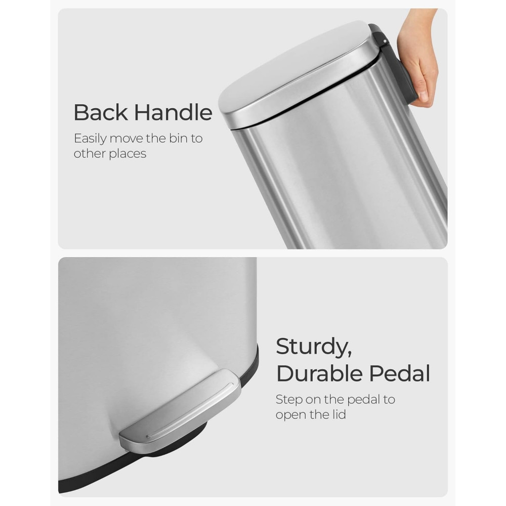 SONGMICS Szemeteskuka 30L, pedálos, lágyan záródó fedél, ezüst 35x24x63cm