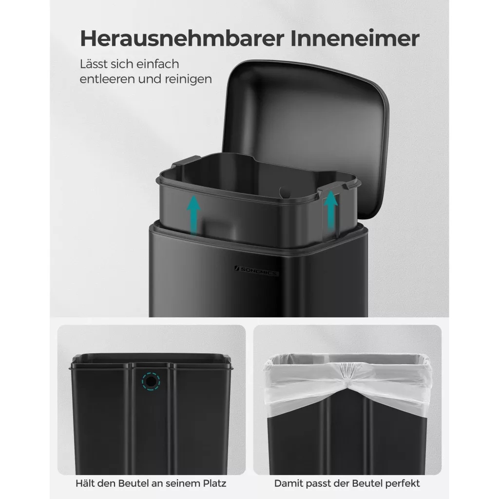 SONGMICS Szemeteskuka 30L, pedálos, szagzáró fedél, fekete 34x25x61cm