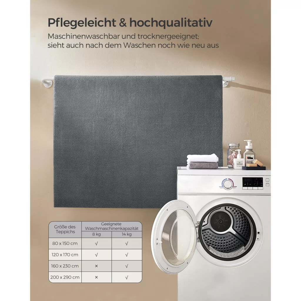 SONGMICS Szőnyeg 160x230 cm, mosható, csúszásmentes, galambszürke