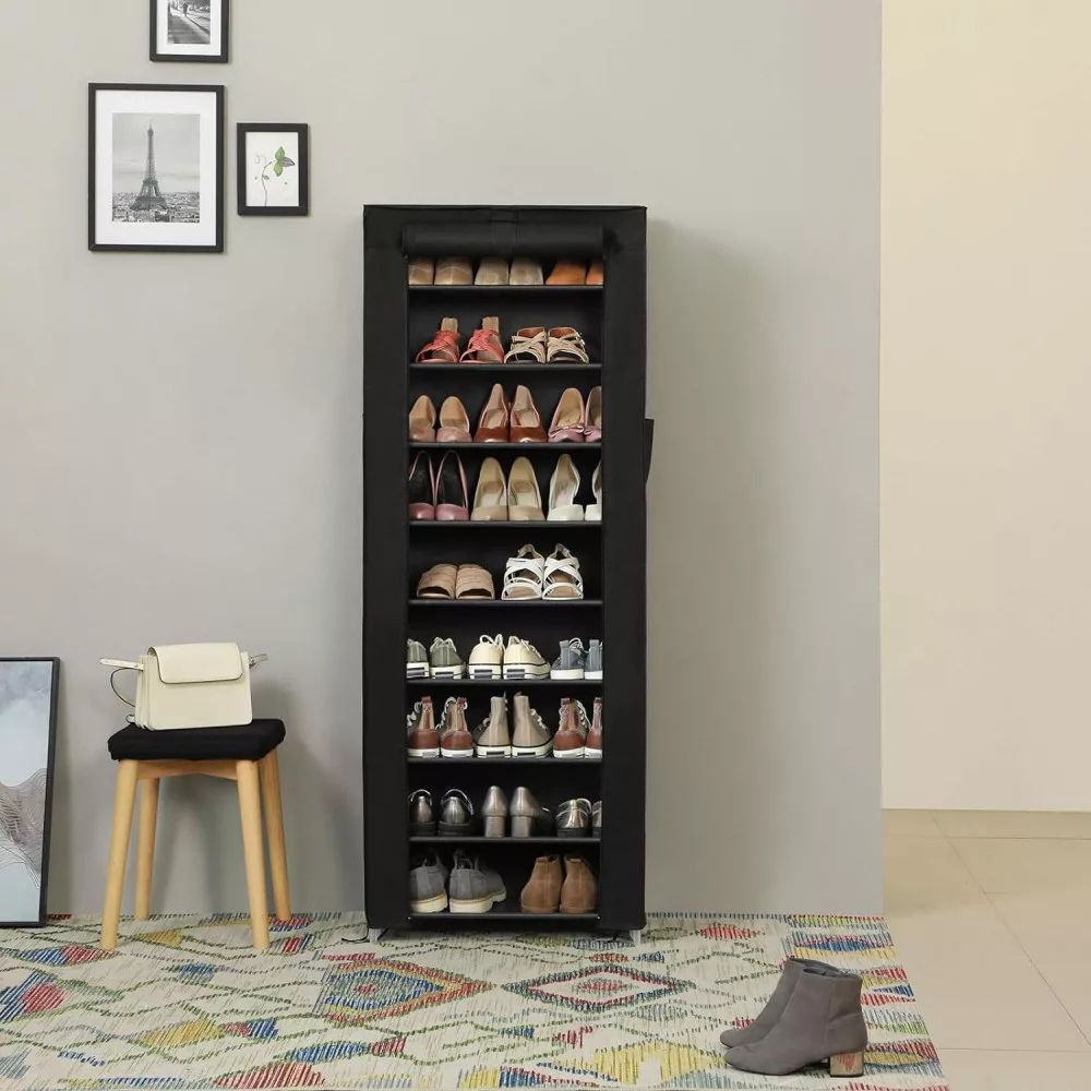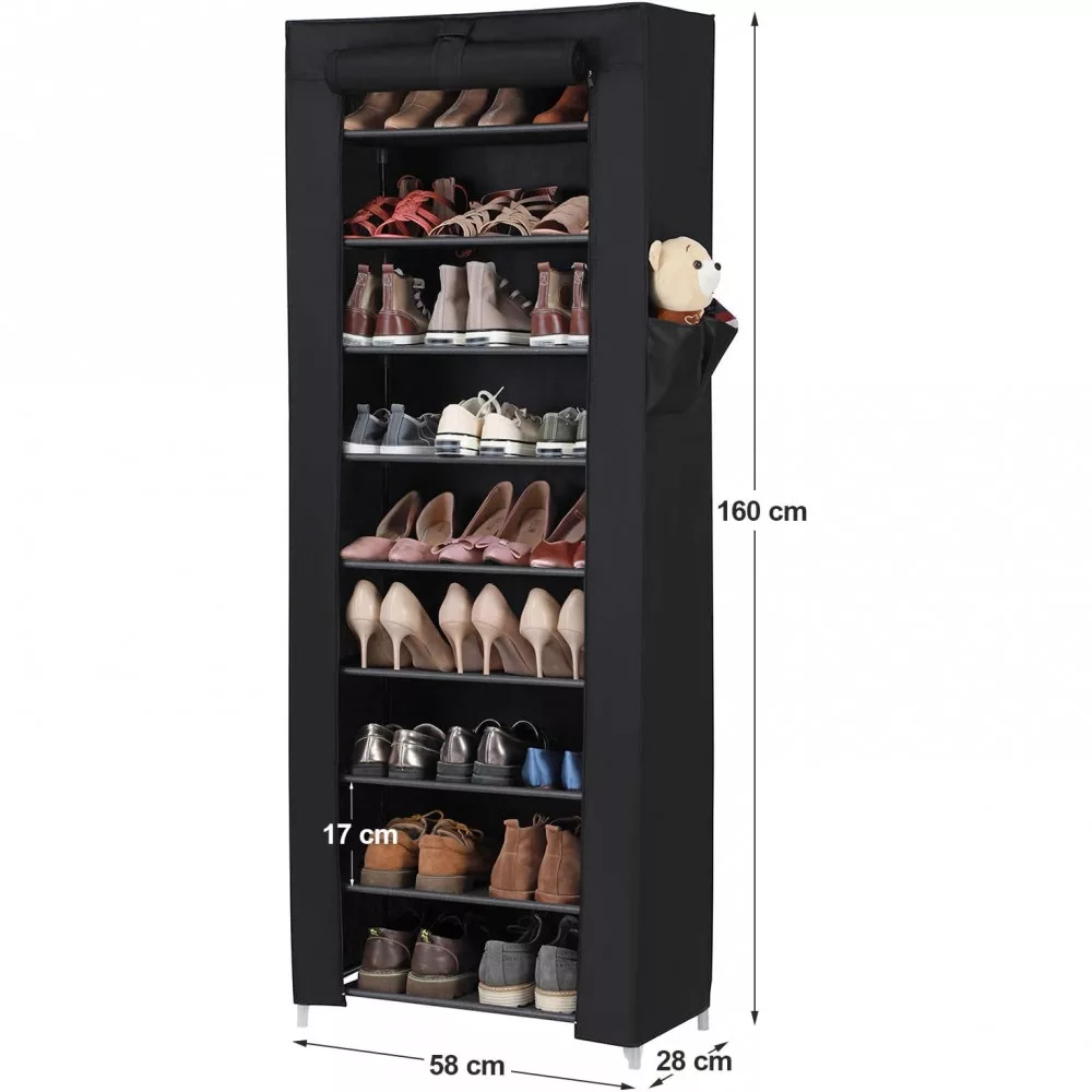 SONGMICS Szövet cipőtároló szekrény, fekete 58x28x160cm