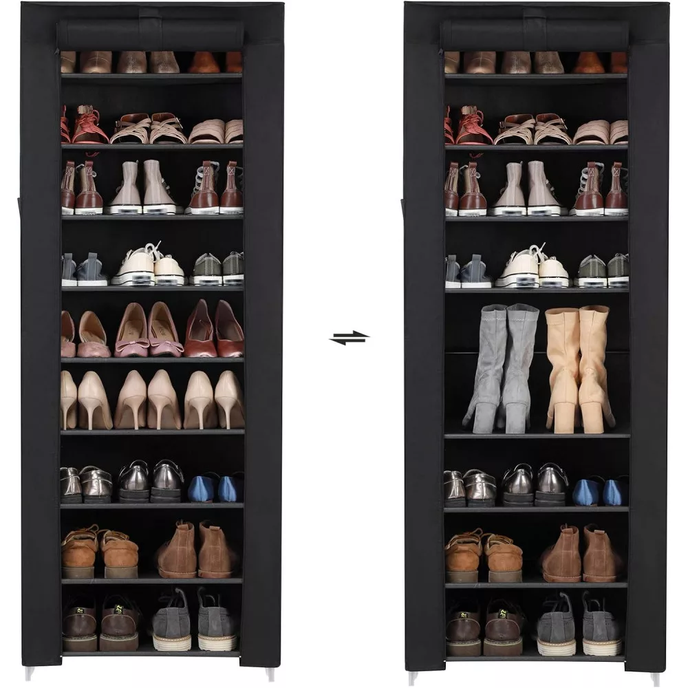 Amit kapsz: Egy 10 szintes cipőtartót kompakt kialakítással, amely kevés helyet foglal a padlón, és egy egyszerű módot a cipőhalmok rendezésére és cipőgyűjteményed bemutatására.