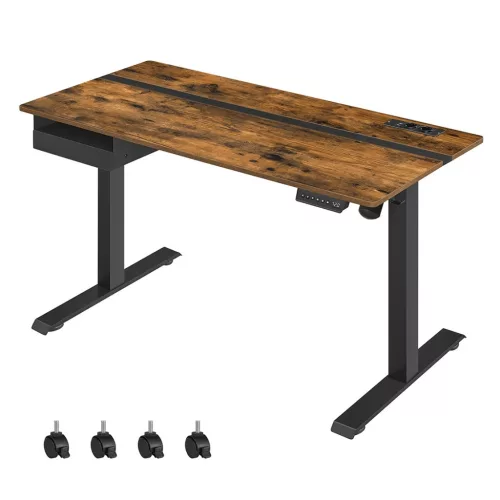 Elektromosan állítható íróasztal, fiókkal, rusztikus barna 140 cm