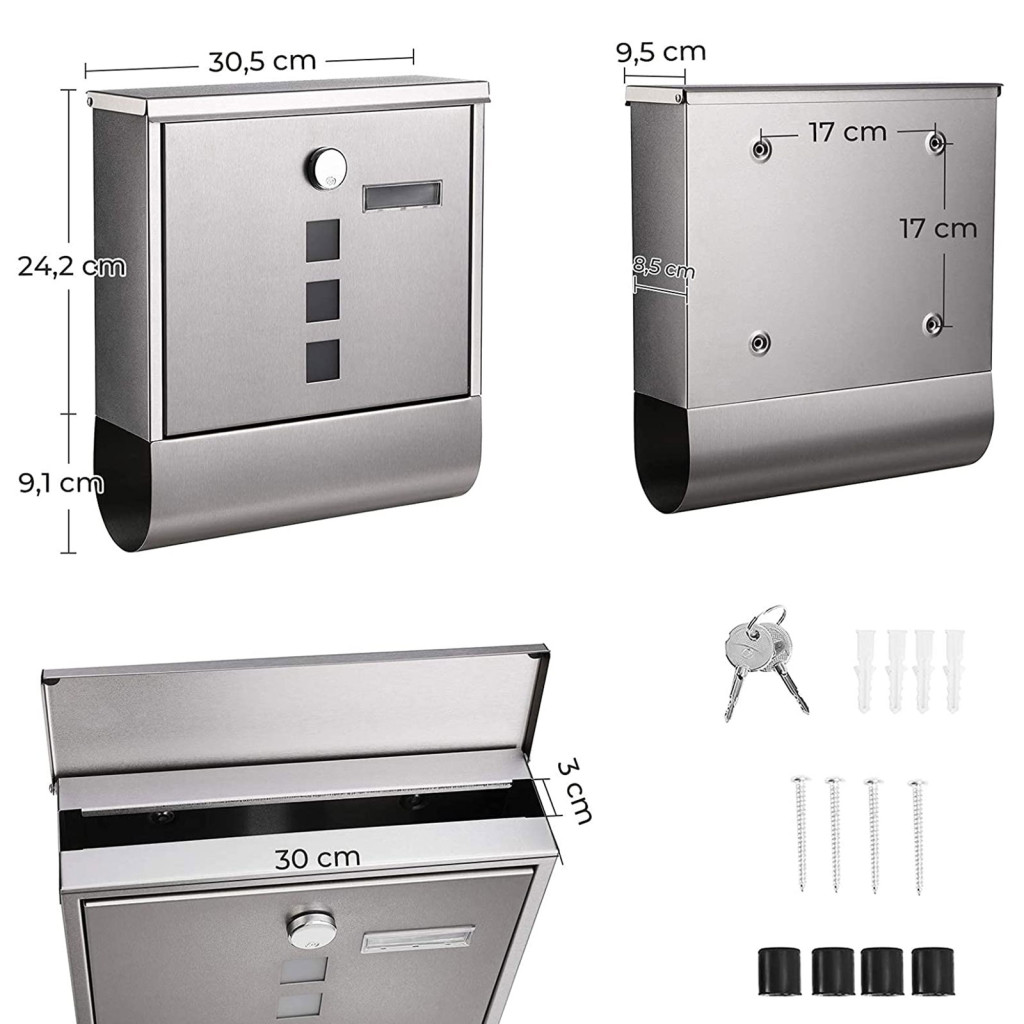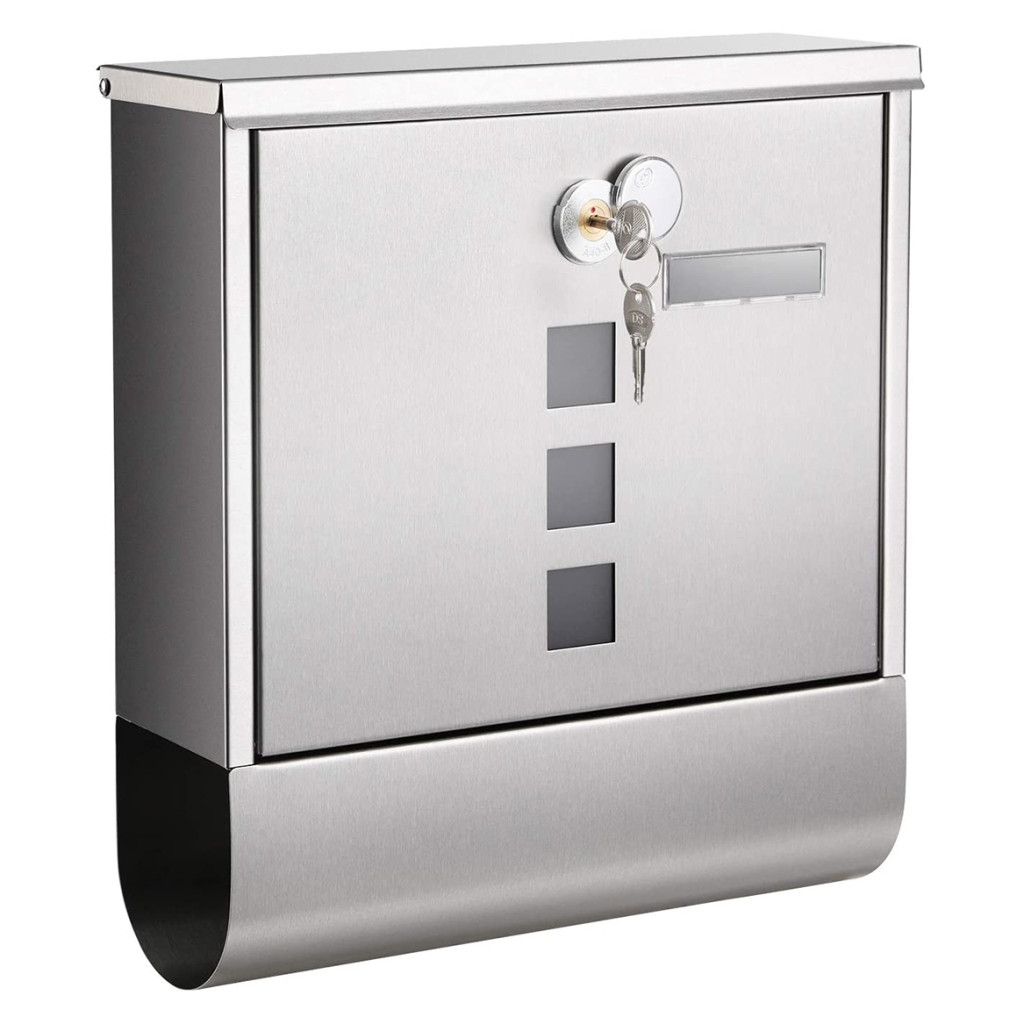 SONGMICS Zárható postaláda újságtartóval, falra, kerítésre szerelhető, ezüst