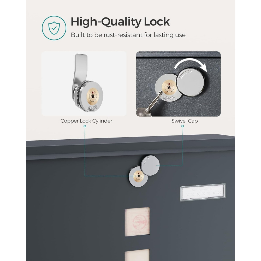 SONGMICS postaláda, falra szerelhető levélválogató doboz, kupakos zár rézmaggal,