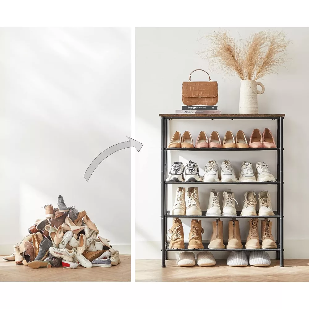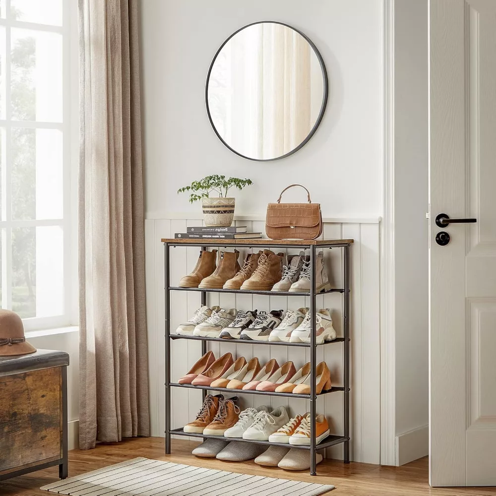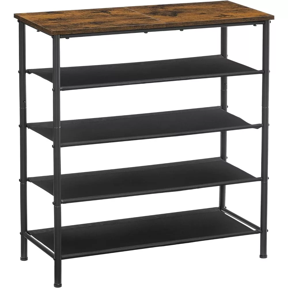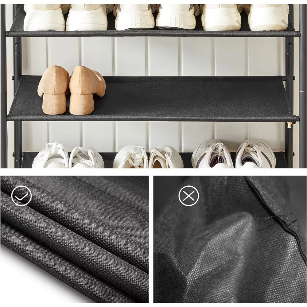 VASAGLE Cipőtartó 5 szintes, Szűk cipőtároló szervező, 4 szövet polccal és tetejével