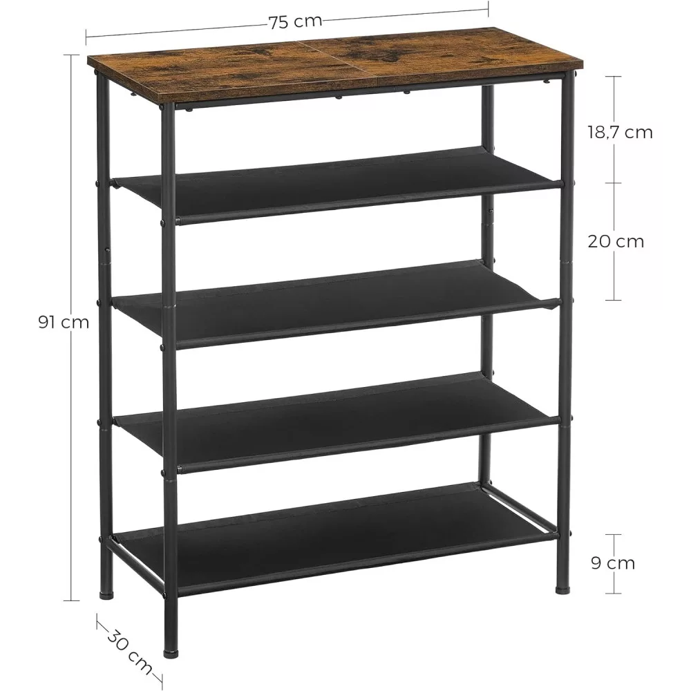 VASAGLE Cipőtároló polc 4 szövet polccal, rusztikus barna, fekete 75x30x91cm