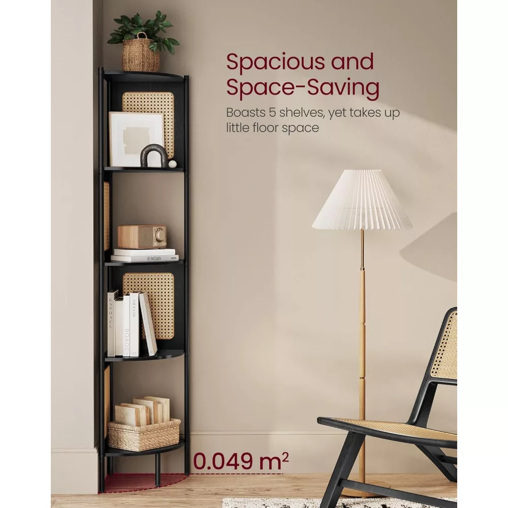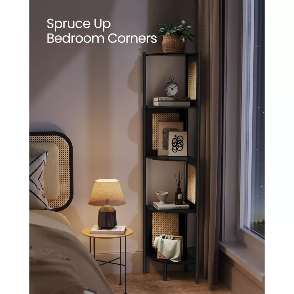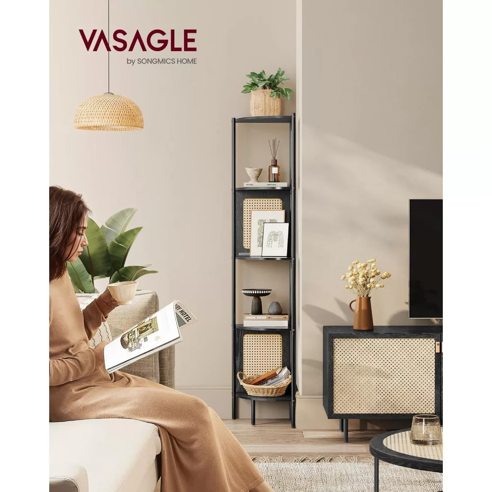 VASAGLE 5 szintes sarok polcos könyvespolc rattan oldalpanelekkel, álló polc fém