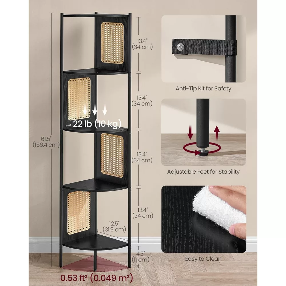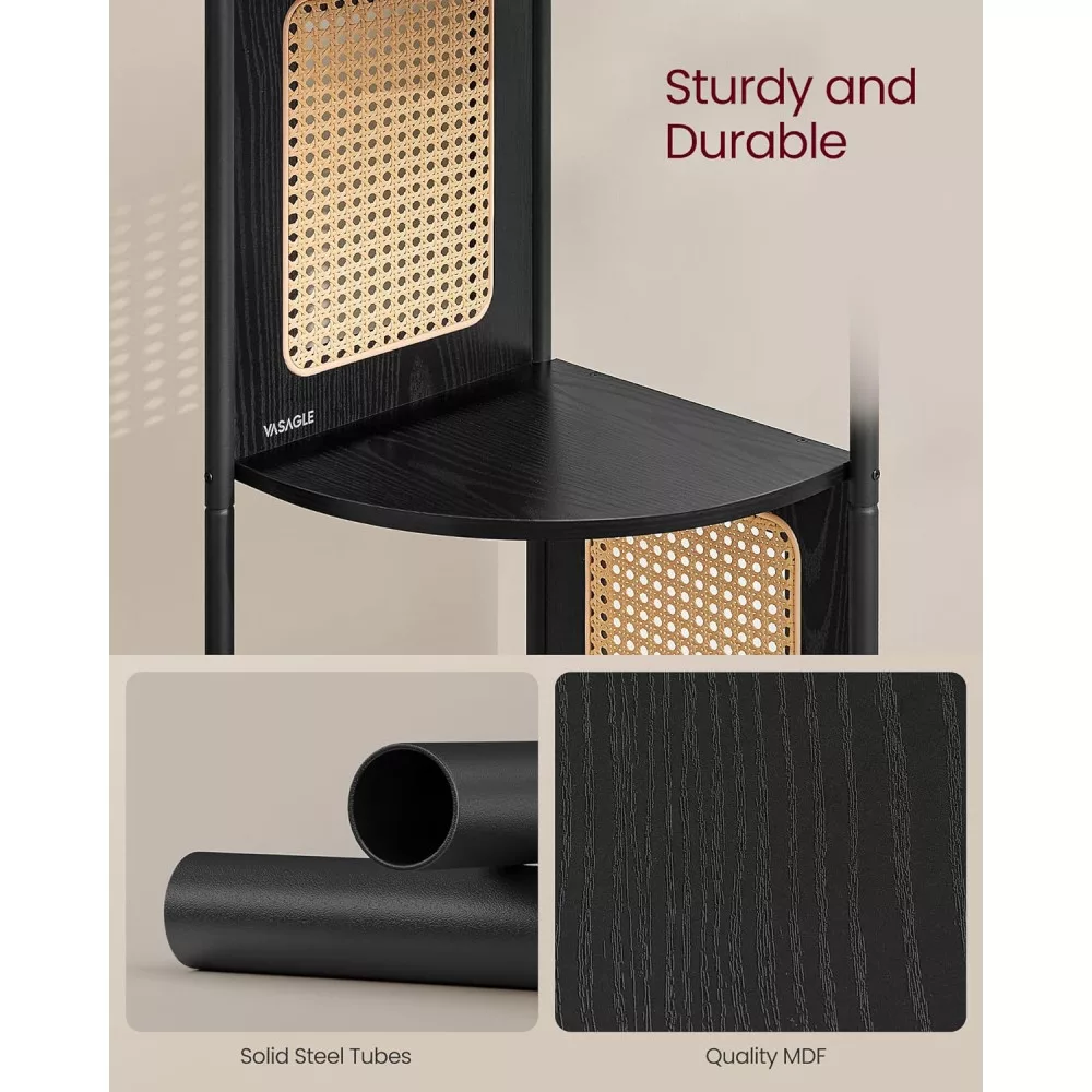 VASAGLE Sarok állópolc, rattan oldalpanelekkel, fekete, 32x32x156cm