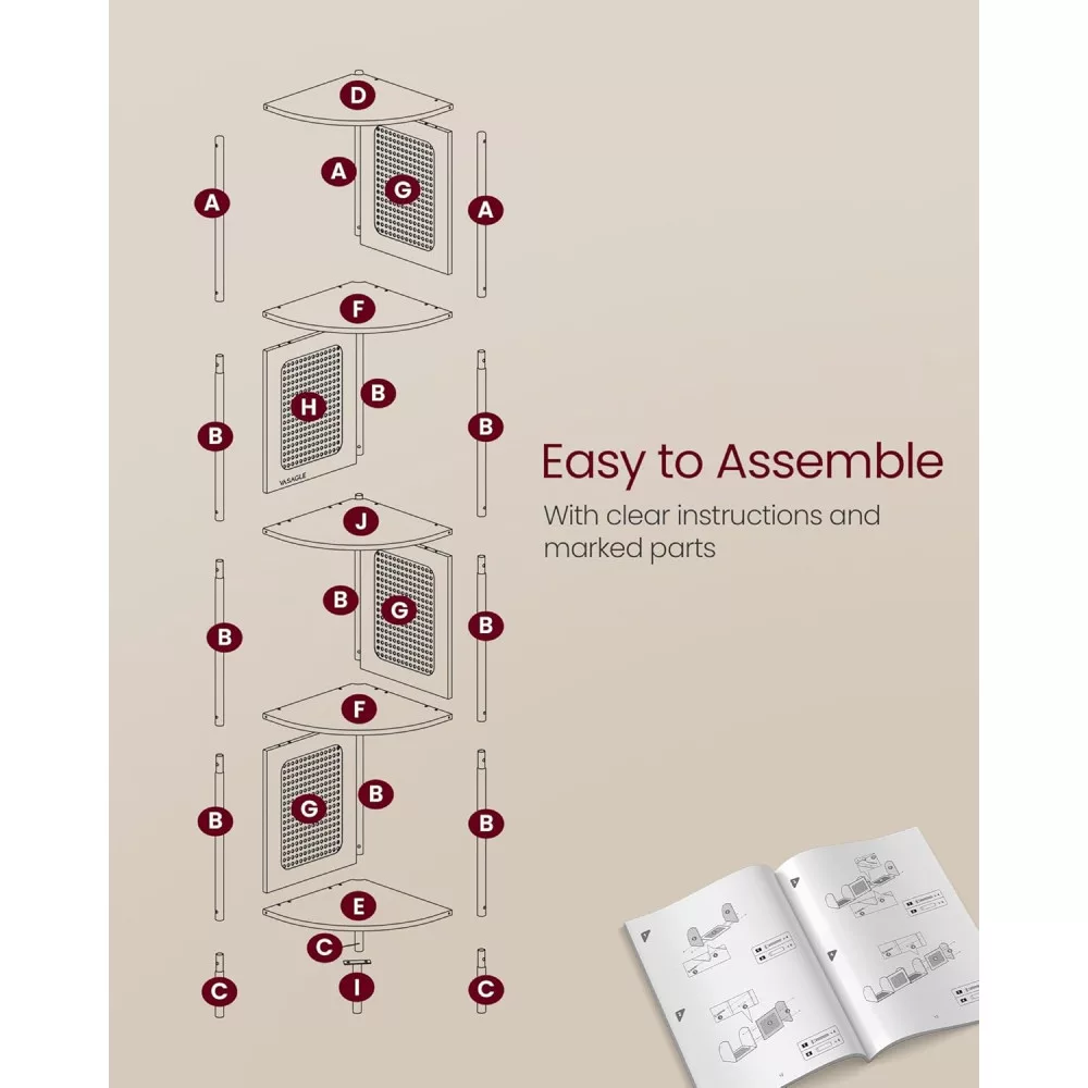 Tágas és Helytakarékos: A 31,75 x 31,75 x 156 cm méretű könyvespolc 5 polcot kínál könyvek, képkeretek, növények és dekoratív elemek számára. Alakjának köszönhetően tökéletesen illeszkedik bármely sarokba és helyet takarít meg