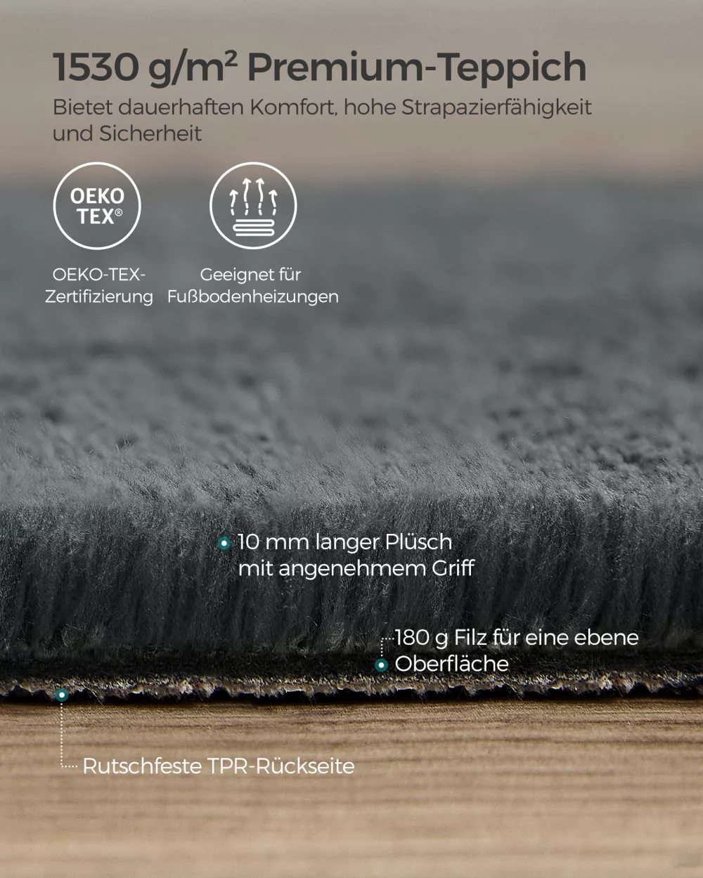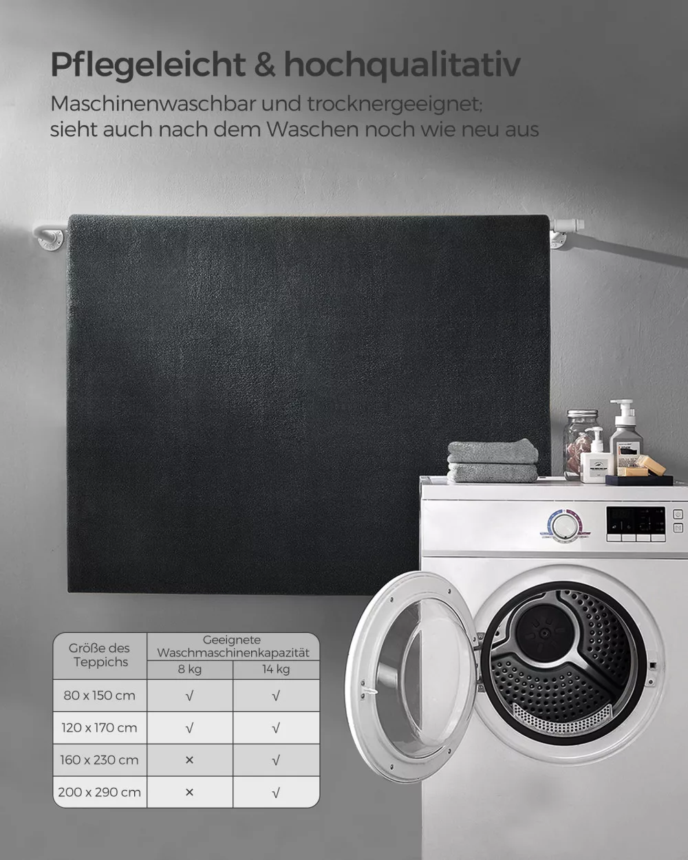 SONGMICS Szőnyeg 120x170 cm, mosható, csúszásmentes, szénszürke