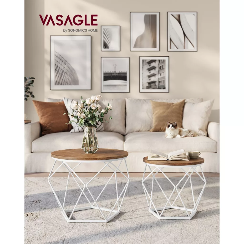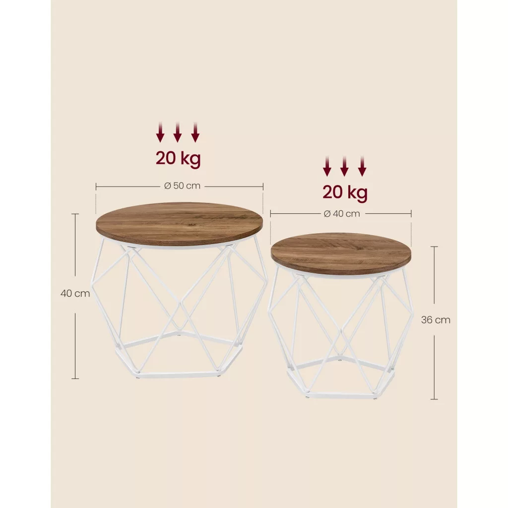 VASAGLE Kerek Dohányzóasztalok, 2 db-os Kisasztal Készlet, Modern Stílus, Levehető