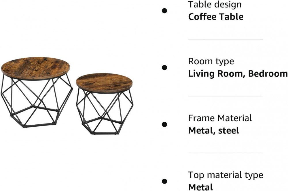 VASAGLE Kávéasztalok, 2 darab oldalsó asztal, erős acél váz, nappalihoz,