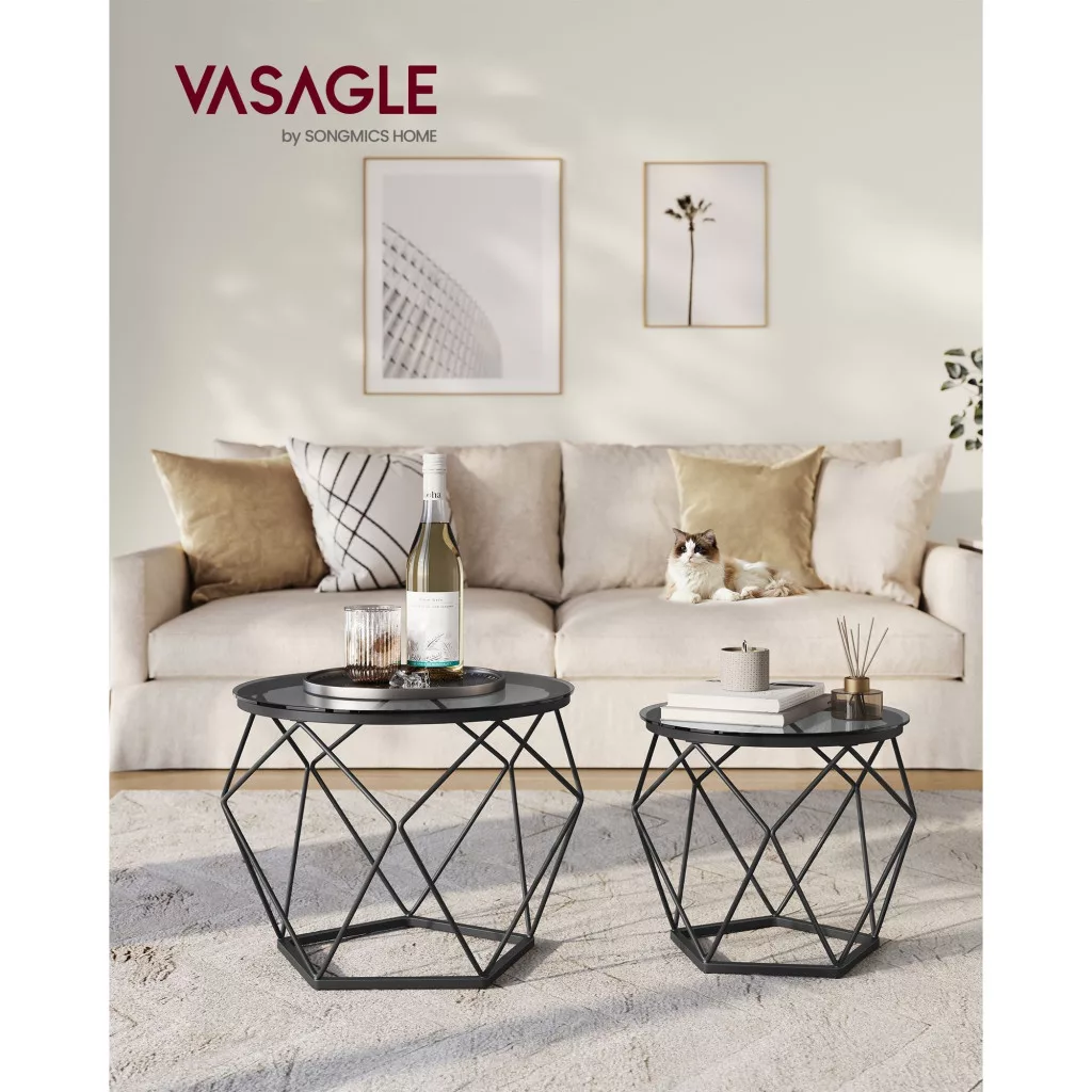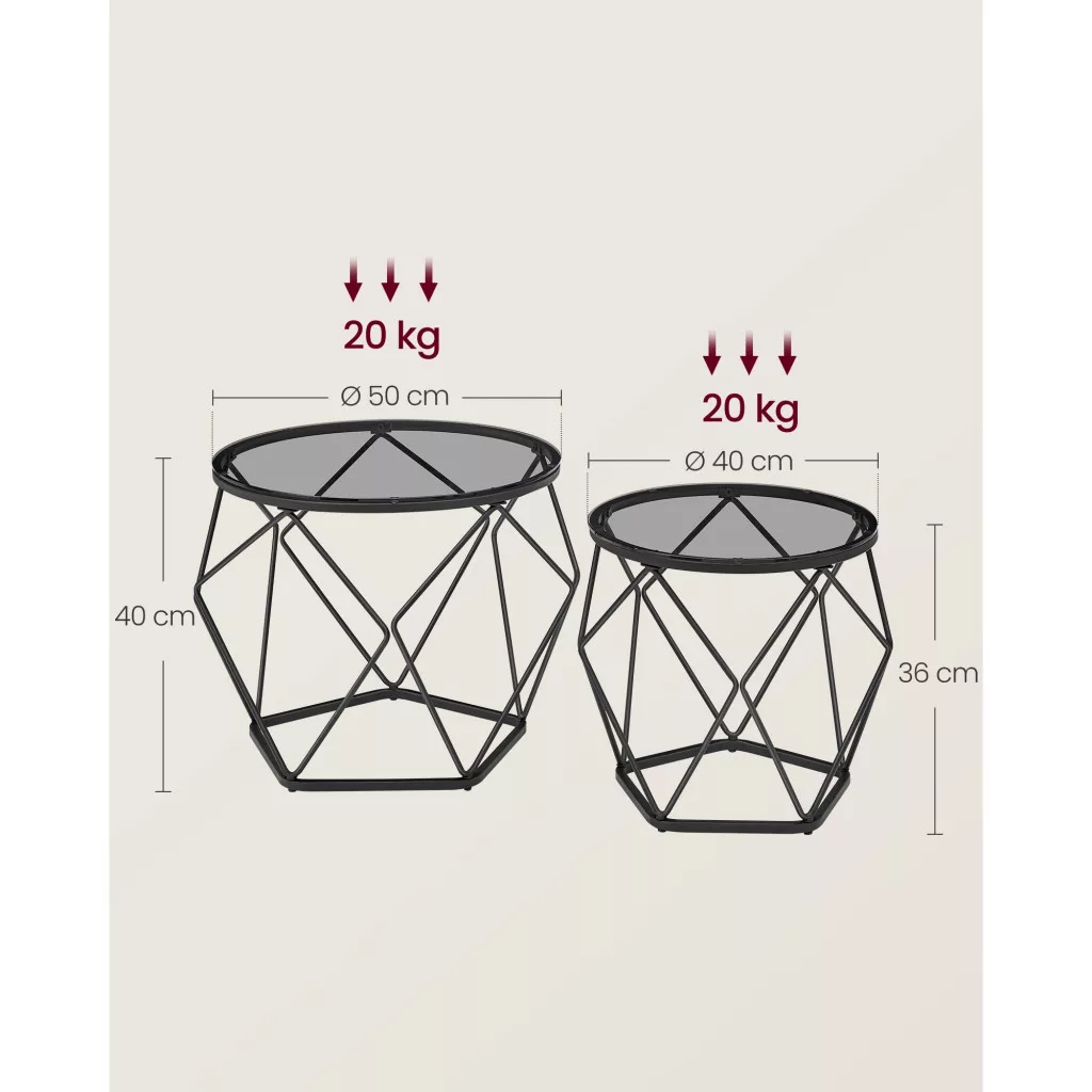 VASAGLE 2 darabos dohányzóasztal szett, üveg lappal fekete 50x50x40cm